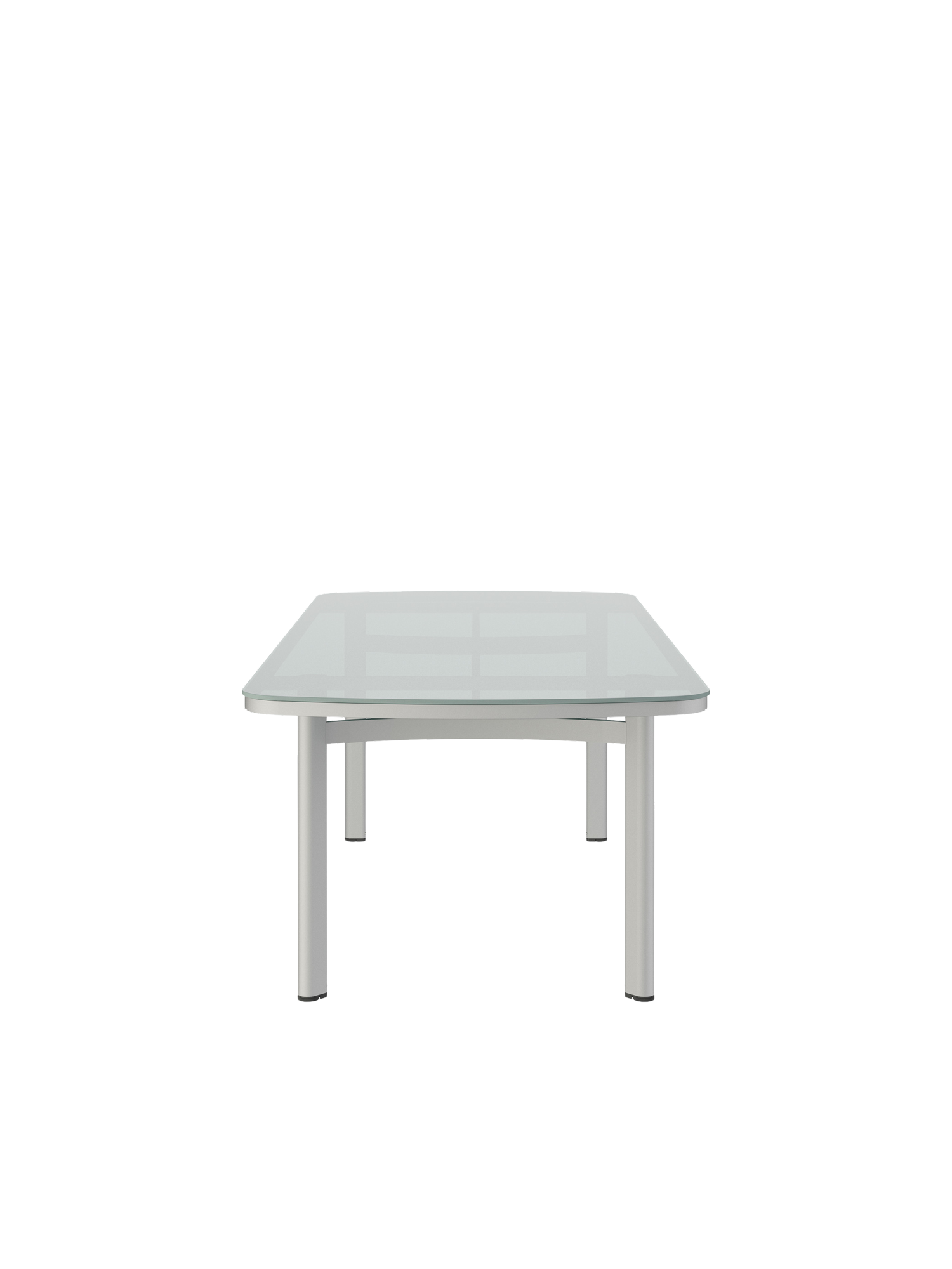 Die Glasplatten aus Sicherheitsglas in einem sanften Grau harmonieren farblich mit dem Geflecht der Kordeln und dem weich schimmernden Eloxal des Tischgestells. Ihre matten Oberflächen sorgen mit einer samtigen Anmutung für einen angenehmen optischen und haptischen Effekt. Die Seiten der Tischplatten sind geschliffen und setzen mit ihrer leicht glänzenden Oberfläche einen zusätzlichen Akzent. Temper Tische mit Glasplatten sind in drei verschiedenen Größen erhältlich.