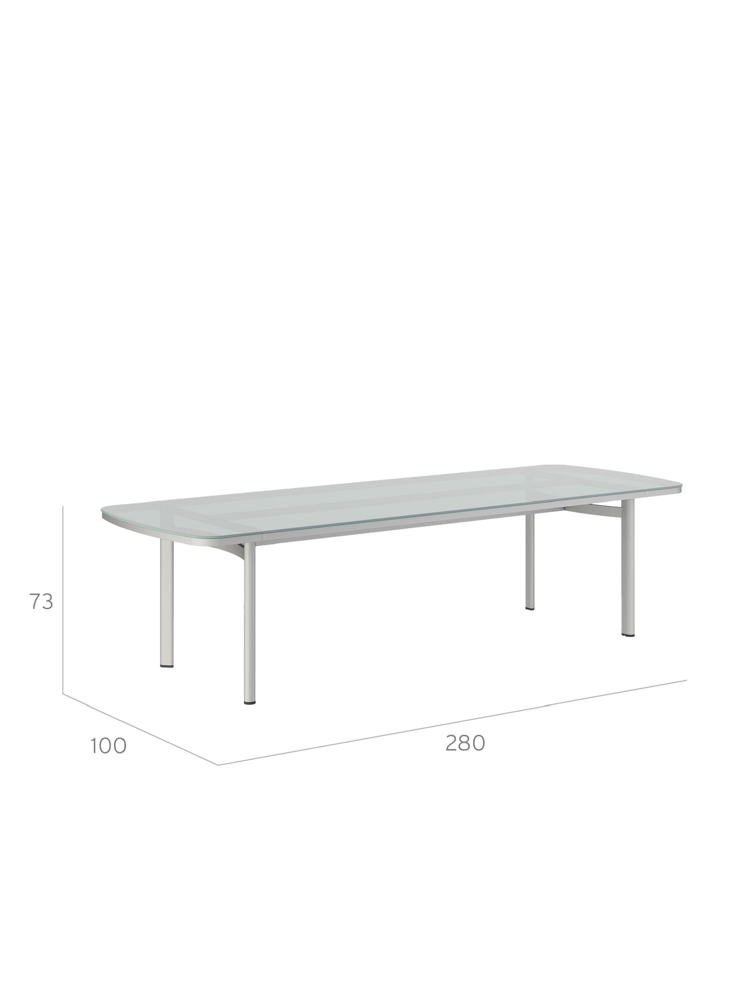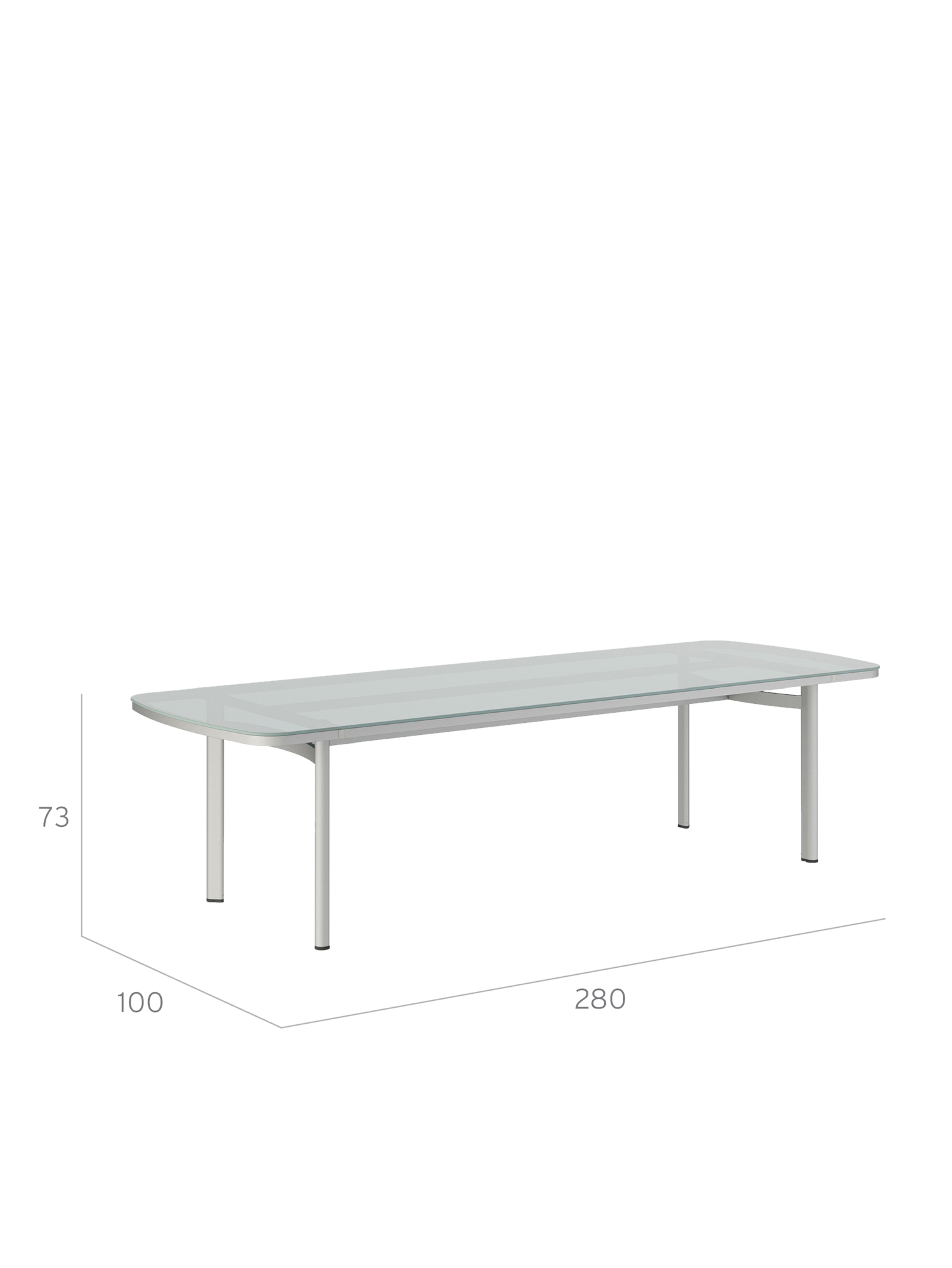 Temper Tisch Eloxal/Glas 280 x 100