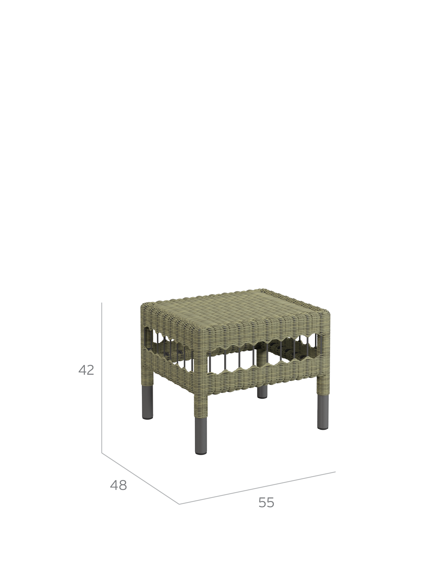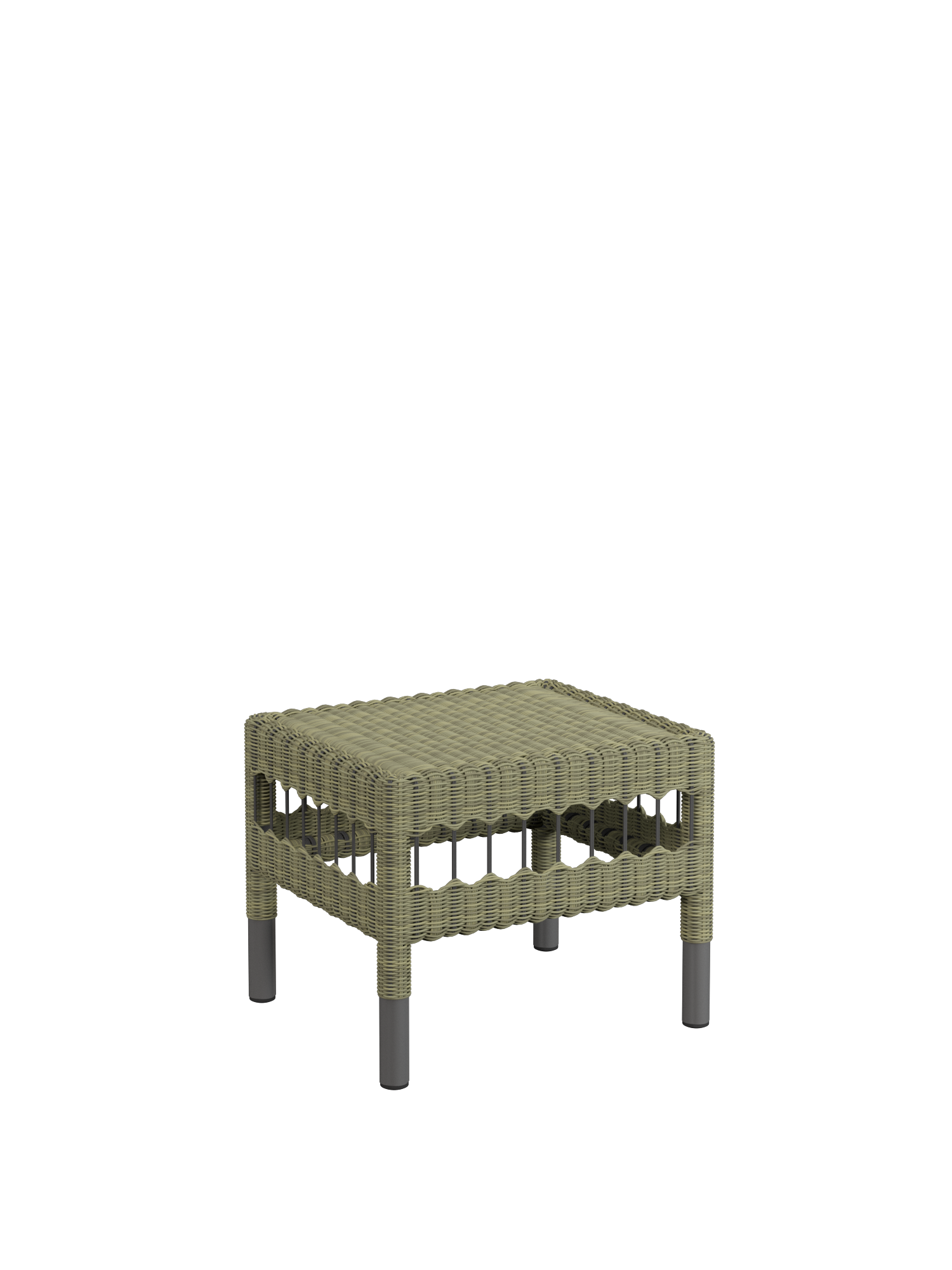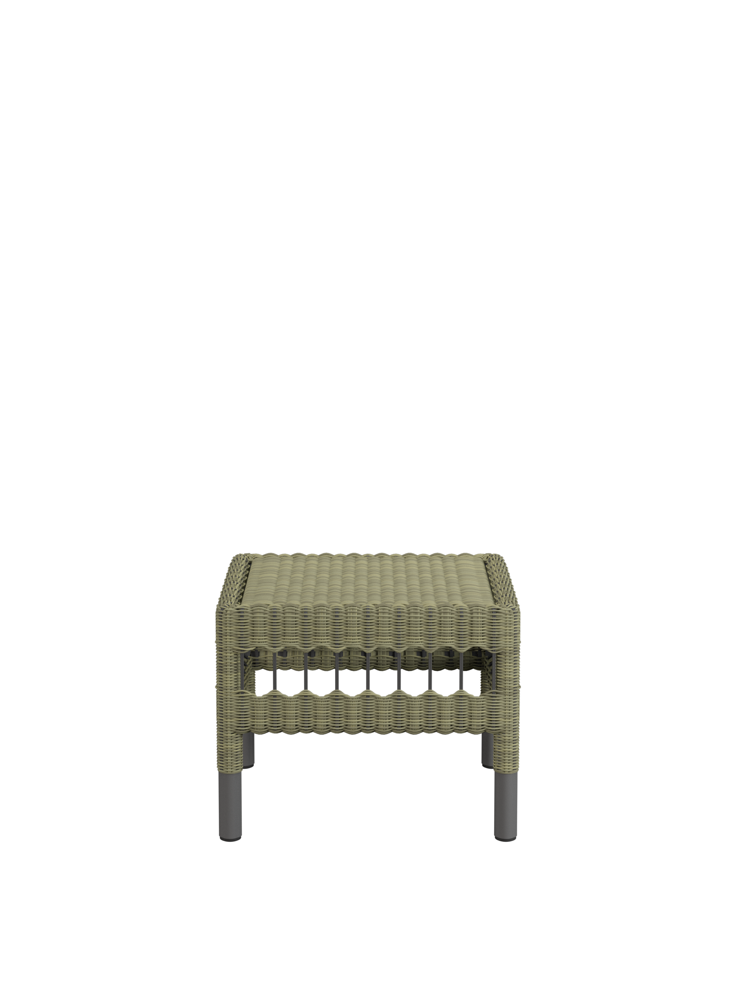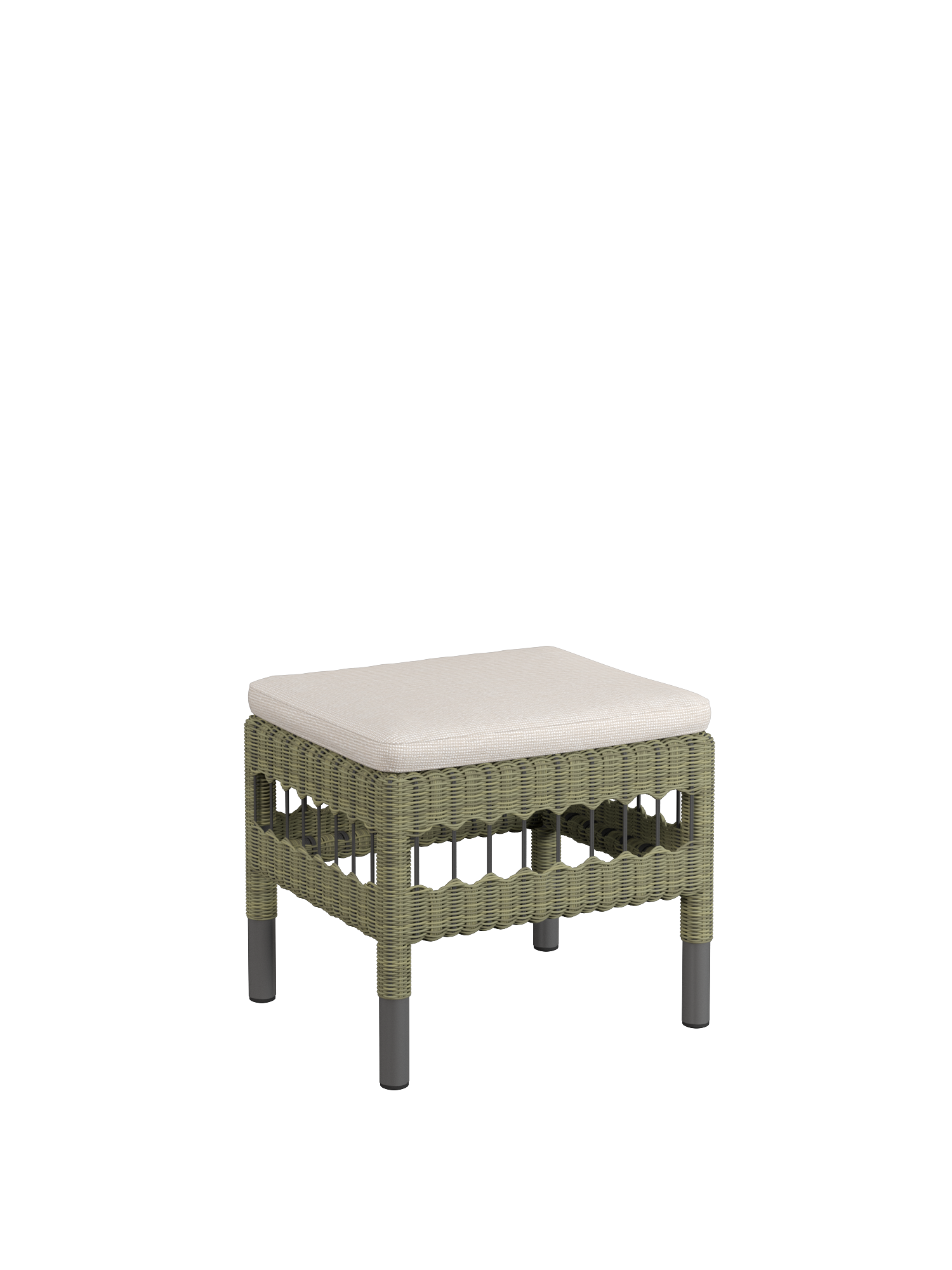 Ein pulverbeschichtetes Aluminiumrohr bildet die Basis des Torenso Hockers. Vom zweifarbigen Geflecht aus Kunststofffasern mit einem Durchmesser von 3 mm wird es stilvoll verborgen. Der leichte Hocker ist schnell dazugestellt, wenn auf dem Armlehnstuhl die Beine ausgestreckt werden sollen, und empfiehlt sich in einer kleinen Gruppe auch als zusätzlicher Sitzplatz – insbesondere mit einem bequemen Sitzkissen, das separat erhältlich ist. Es besteht zu 100 % aus Polyacryl, hat eine rutschfeste Unterseite und zeichnet sich durch eine Perlstruktur mit besonderer Haptik aus.