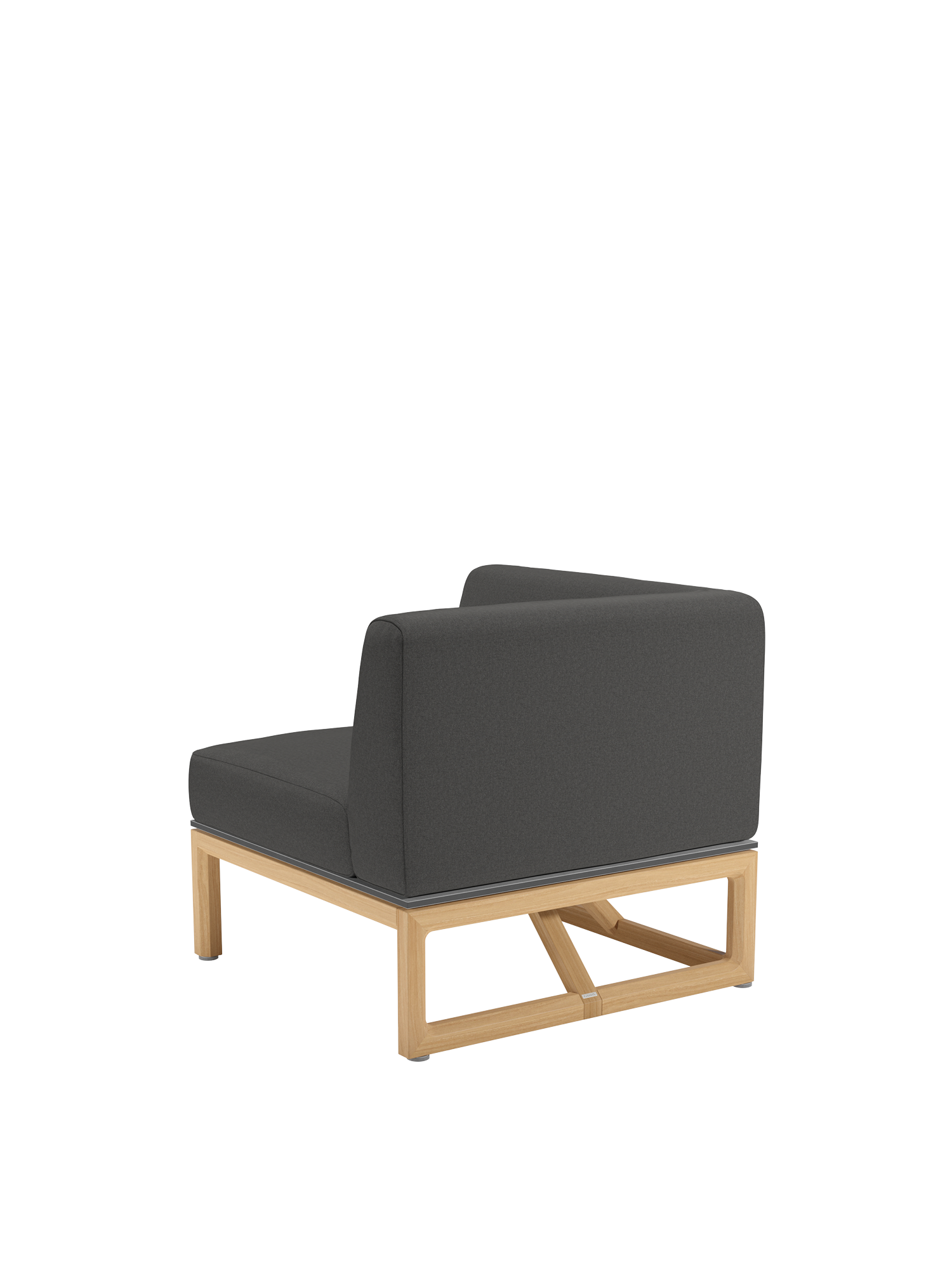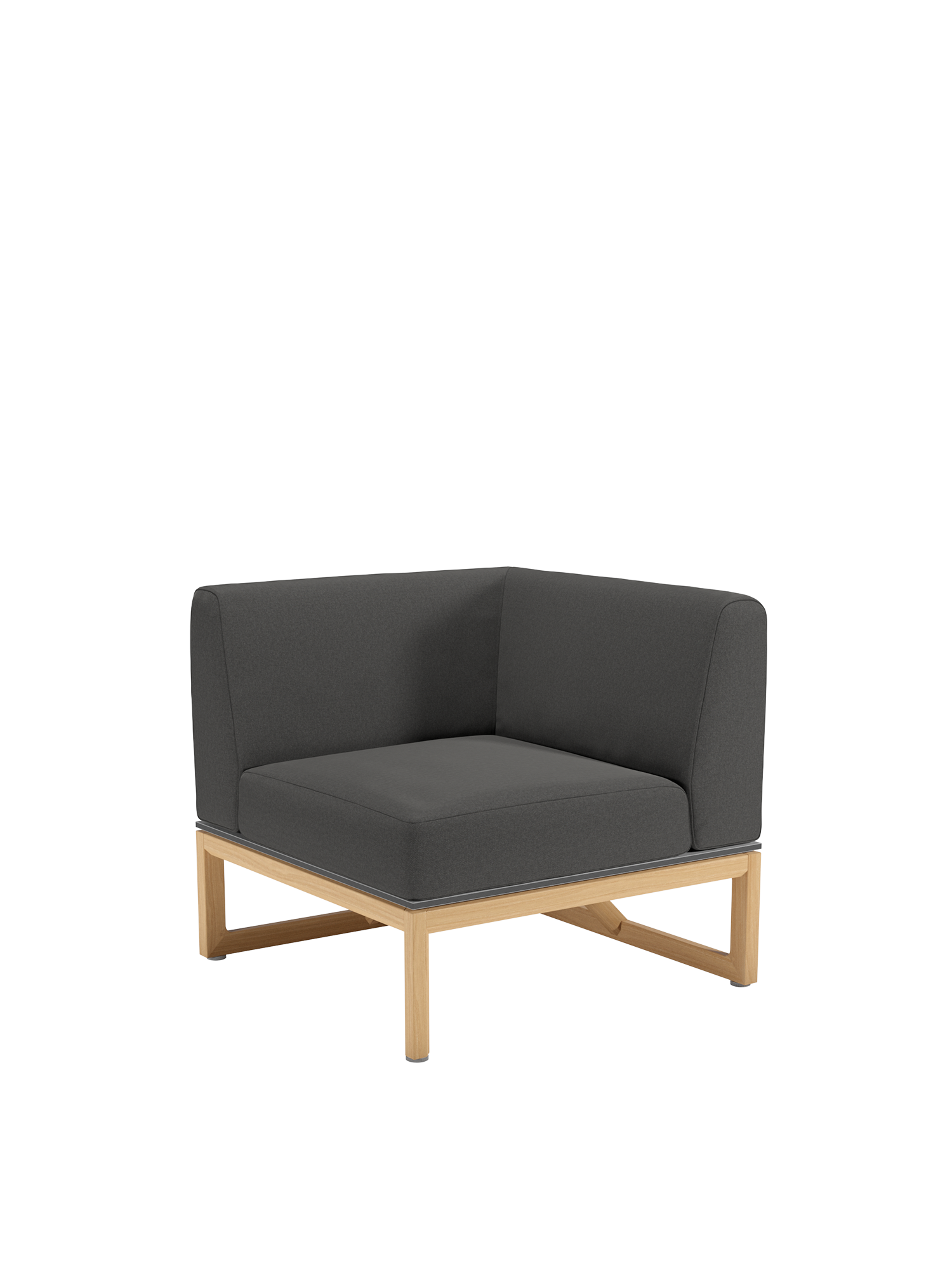 Ein markantes Teakgestell rahmt opulente Polster, die pure Behaglichkeit versprechen. Das vielseitige Eckelement eröffnet großzügigen Gestaltungsspielraum und kann beliebig mit den anderen Polstermöbeln der Kollektion kombiniert werden. Das puristische Design verbindet das Eckelement mit der Trey Sitzgruppe. Gemeinsam laden die zeitlosen Dining- und Loungemöbel zur ganzheitlichen Einrichtung von Gärten und Terrassen ein. Für Komfort, dem einfach nichts hinzuzufügen ist.