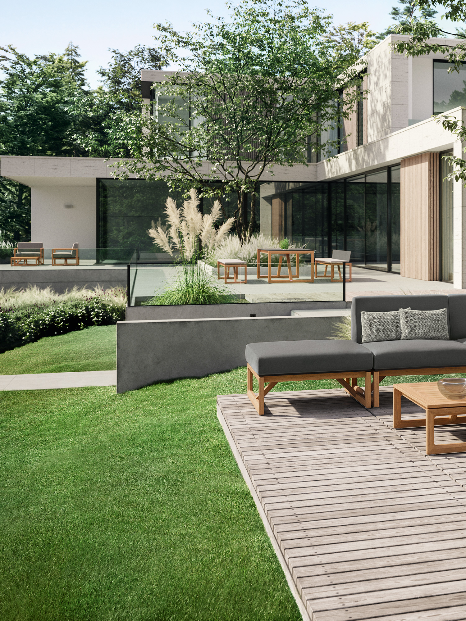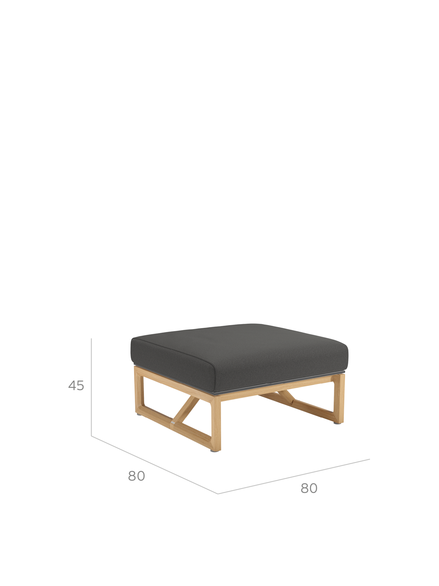 Ein markantes Teakgestell rahmt das opulente Polster, das pure Behaglichkeit verspricht. Der einladende Hocker empfiehlt sich als Solitär oder als Ergänzung zum Sessel der Kollektion. Das puristische Design verbindet den Hocker mit der Trey Sitzgruppe. Gemeinsam laden die zeitlosen Dining- und Loungemöbel zur ganzheitlichen Einrichtung von Gärten und Terrassen ein. Für Komfort, dem einfach nichts hinzuzufügen ist.