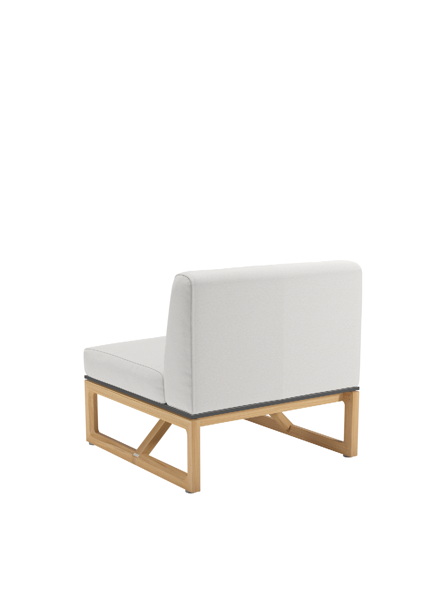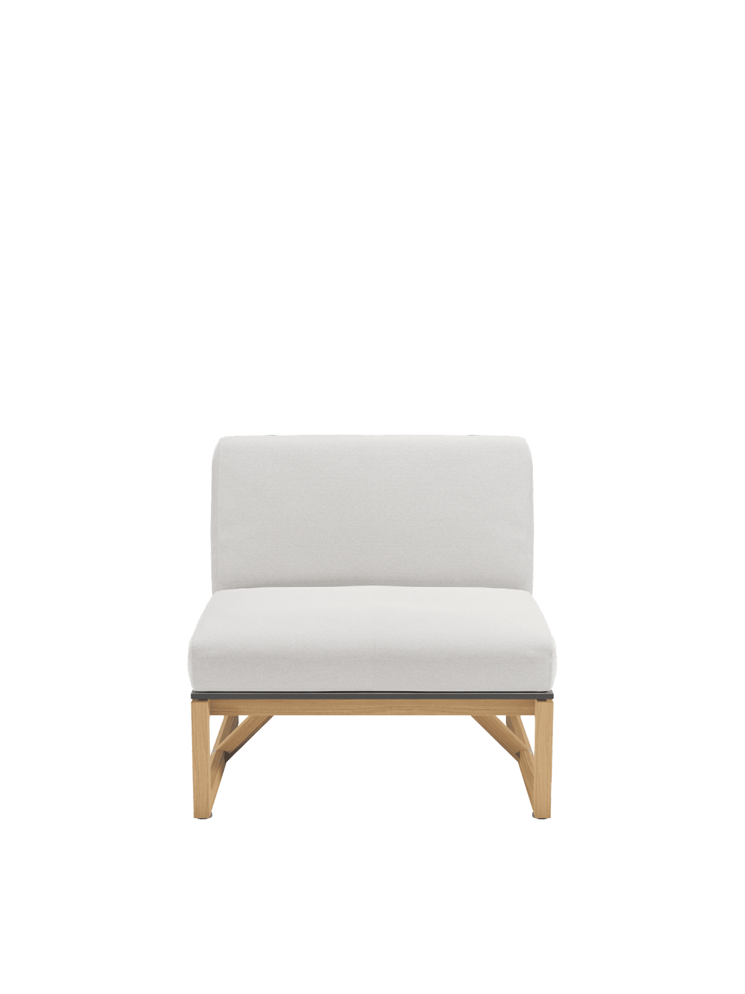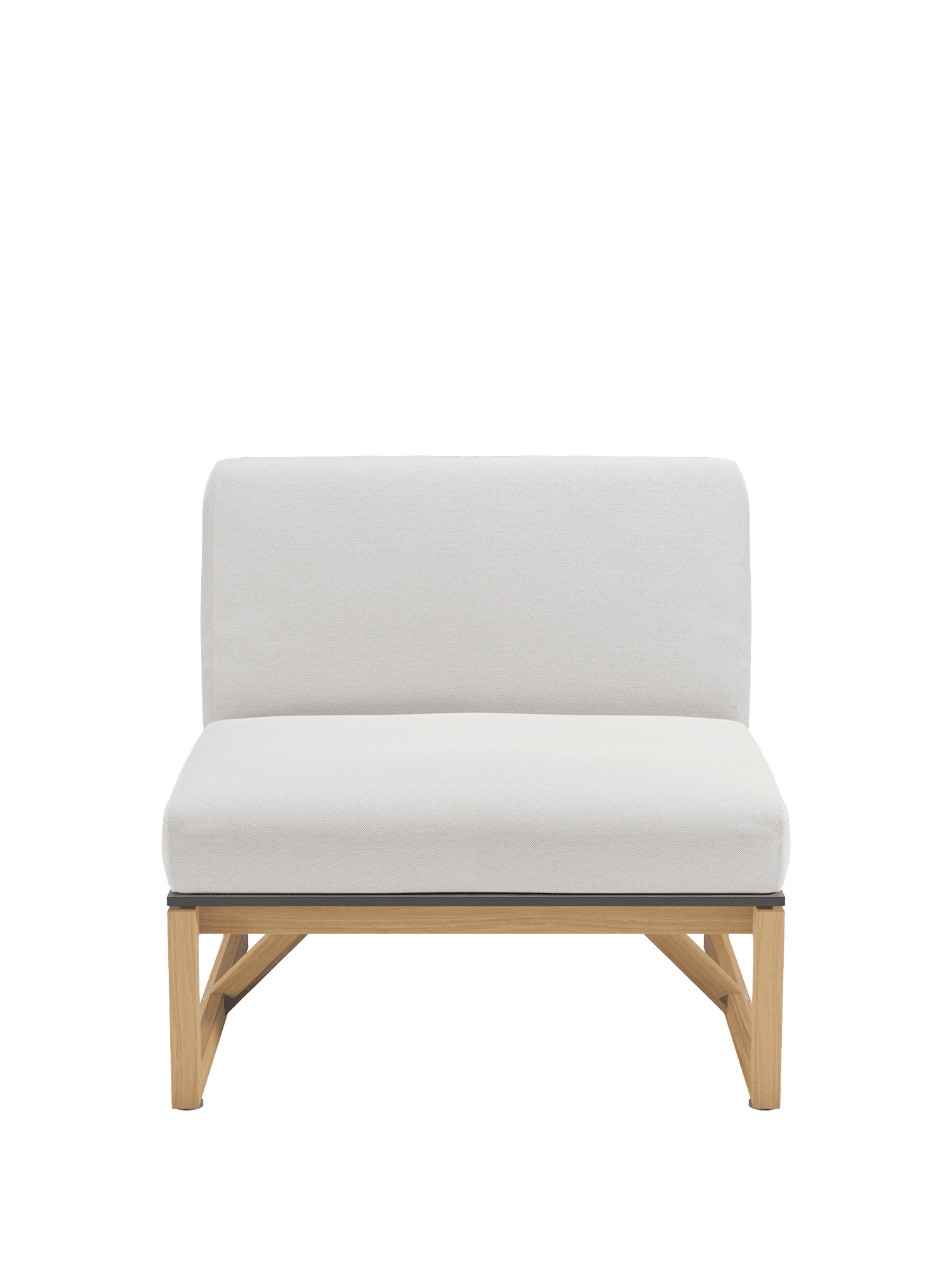 Ein markantes Teakgestell rahmt opulente Polster, die pure Behaglichkeit versprechen. Das flexible Element ohne Armlehnen eröffnet vielfältige Möglichkeiten und kann beliebig mit den anderen Polstermöbeln der Kollektion kombiniert werden. Das puristische Design verbindet das Mittelelement mit der Trey Sitzgruppe. Gemeinsam laden die zeitlosen Dining- und Loungemöbel zur ganzheitlichen Einrichtung von Gärten und Terrassen ein. Für Komfort, dem einfach nichts hinzuzufügen ist.