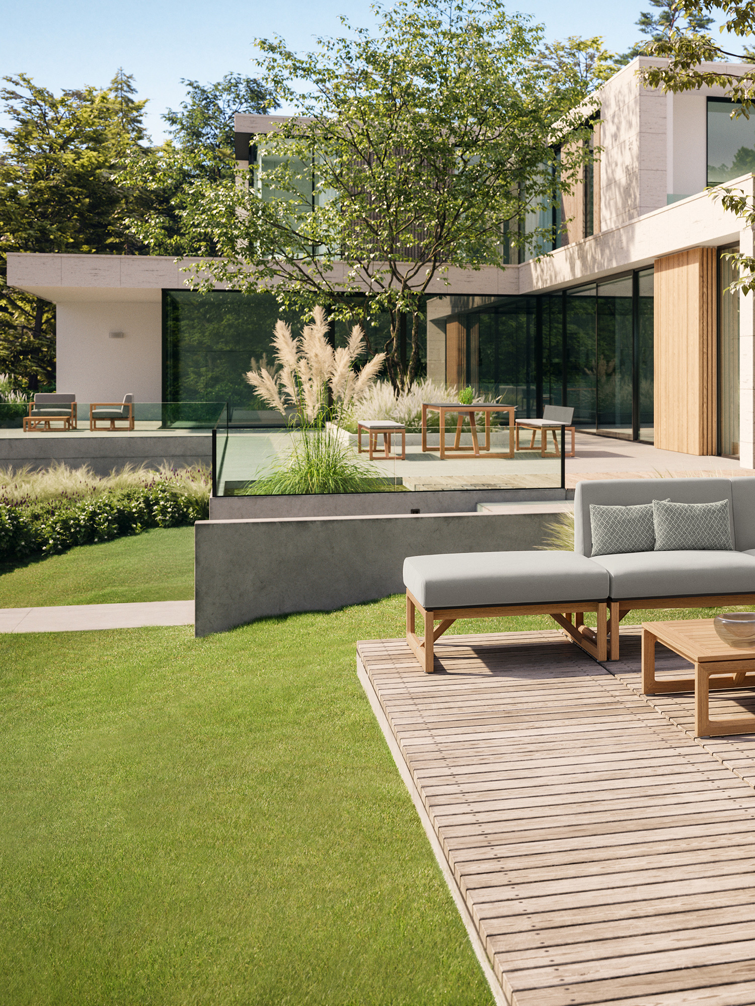Ein markantes Teakgestell rahmt opulente Polster, die für optimale Stabilität fest miteinander verbunden sind und pure Behaglichkeit versprechen. Das einladende Sofa empfiehlt sich als Solitär und kann ebenso gut mit den anderen Polstermöbeln der Kollektion kombiniert werden. Das puristische Design verbindet das Sofa mit der Trey Sitzgruppe. Gemeinsam laden die zeitlosen Dining- und Loungemöbel zur ganzheitlichen Einrichtung von Gärten und Terrassen ein. Für Komfort, dem einfach nichts hinzuzufügen ist.