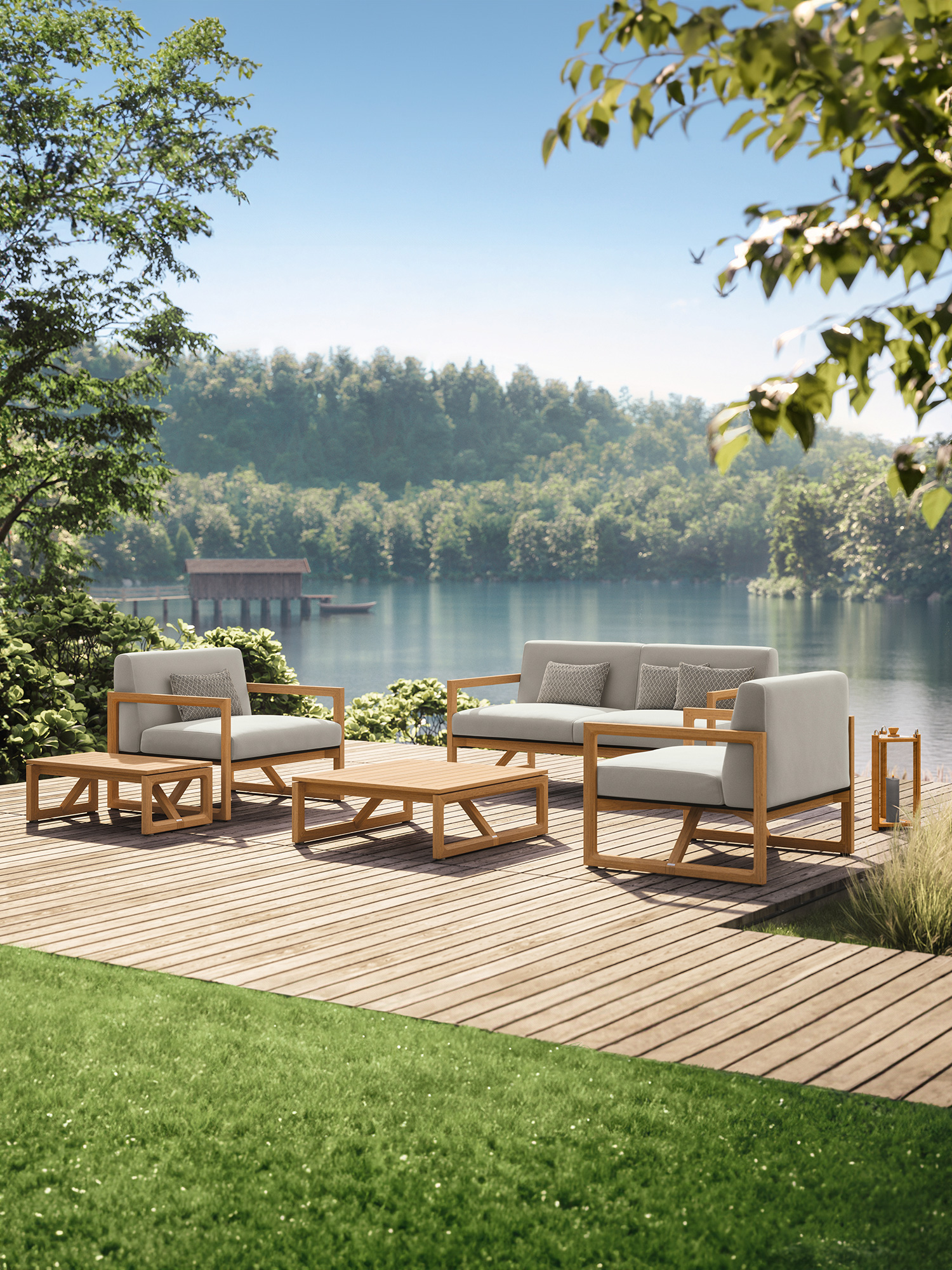 - Gestell aus wetterfestem Teakholz