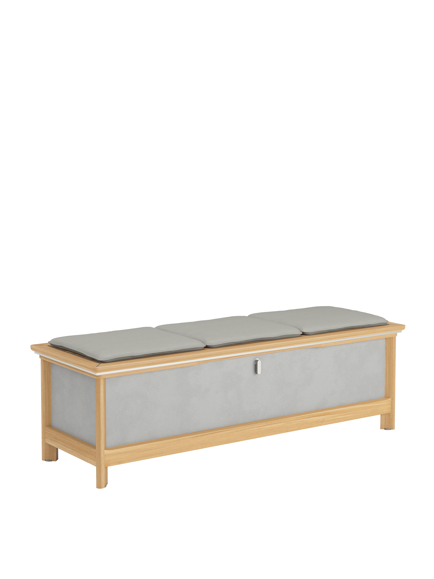 Kissentruhen sollten möglichst an einem gut belüfteten Platz mit festem Untergrund stehen. Höhenversteller an den Füßen der Truhen gleichen Unebenheiten im Boden aus. Beim Umstellen der Kissentruhen ist zu beachten, dass sie unter dem Korpus angehoben wird.