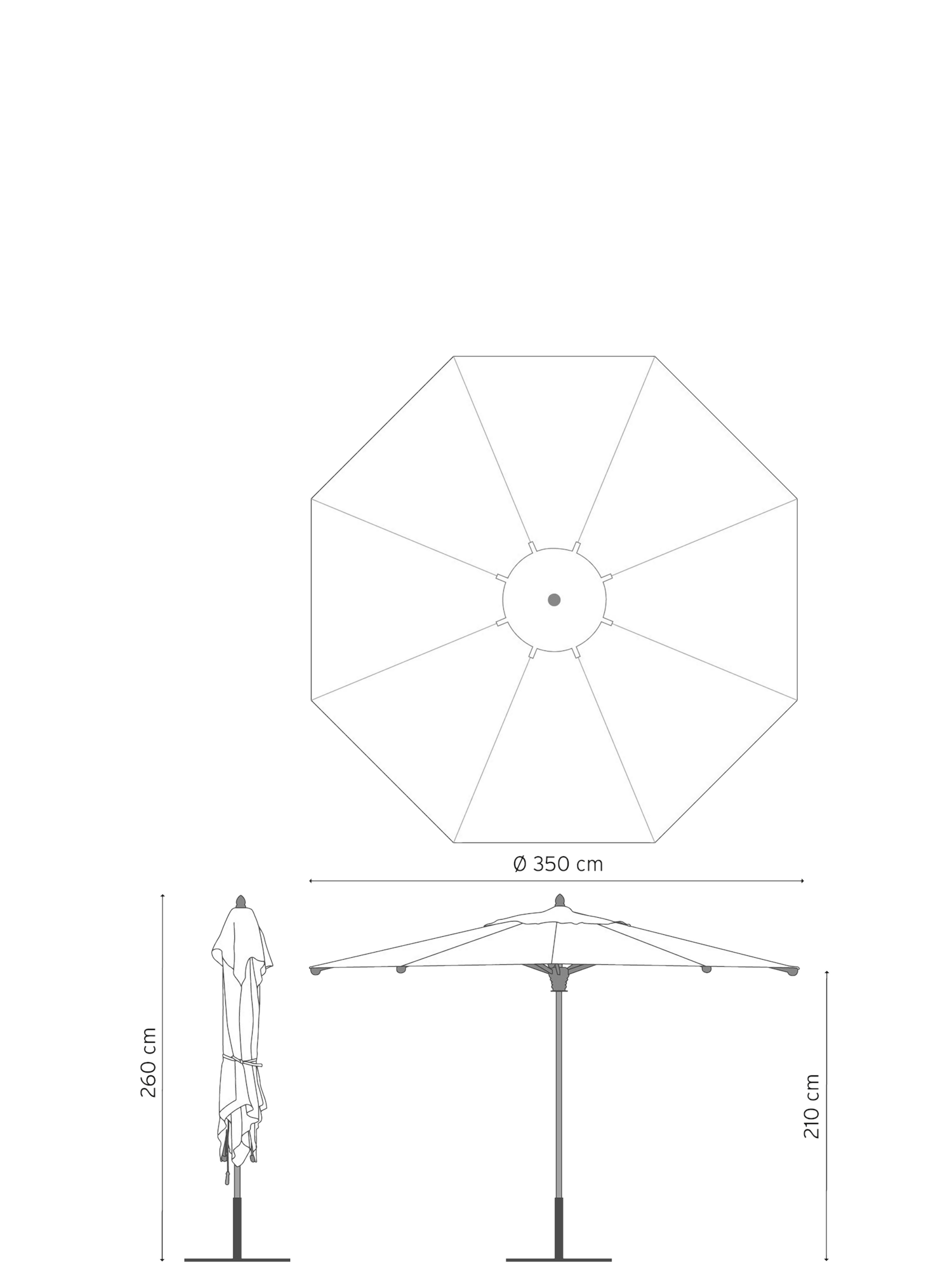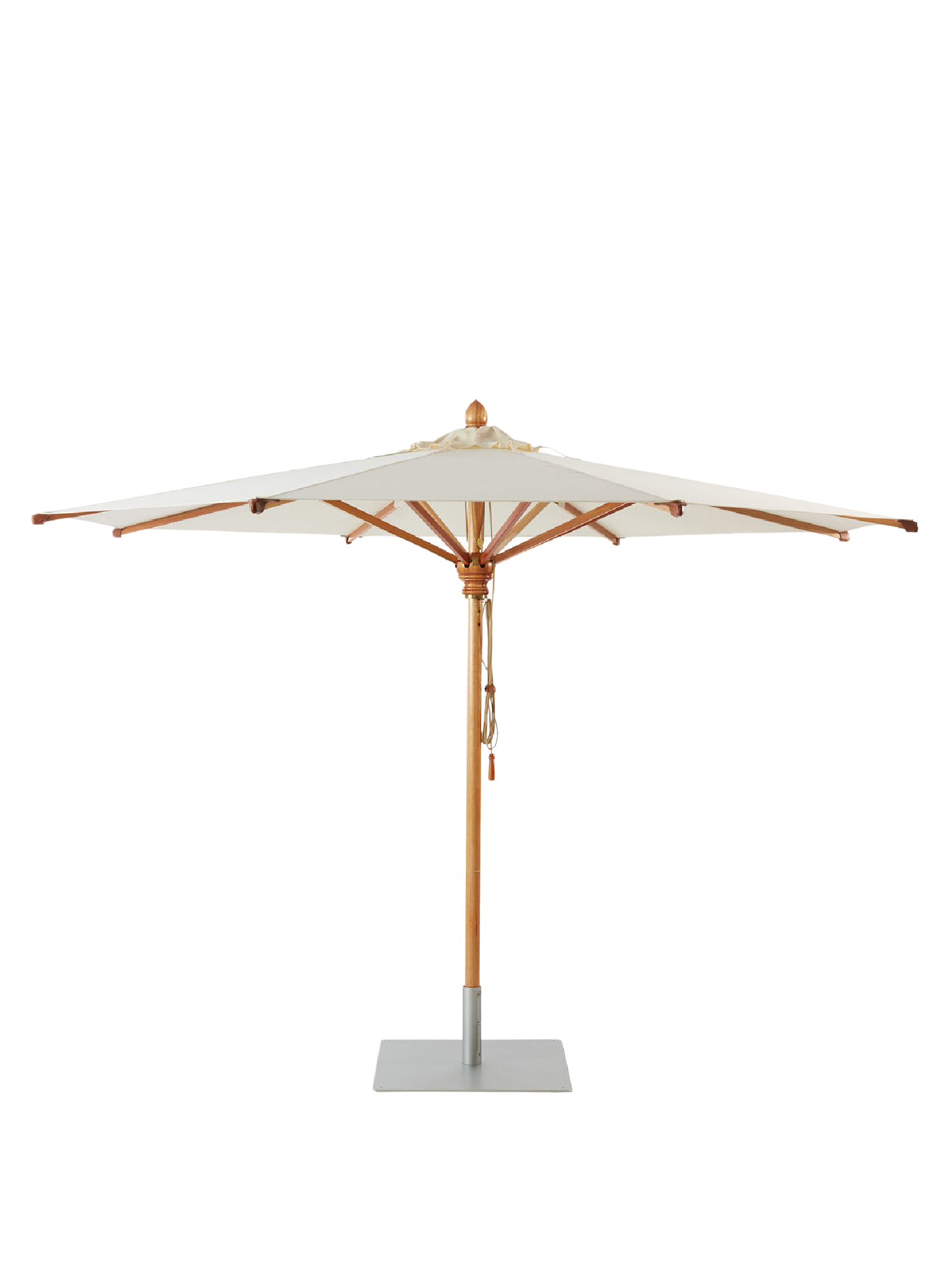 Umbria ist in drei Formen und verschiedenen Größen im Farbton Elfenbein erhältlich. Ob rund, quadratisch oder rechteckig - die Sonnenschirme eignen sich besonders für größere Tafelrunden. Umbria harmoniert sowohl mit klassischen als auch mit modernen Möbeln.