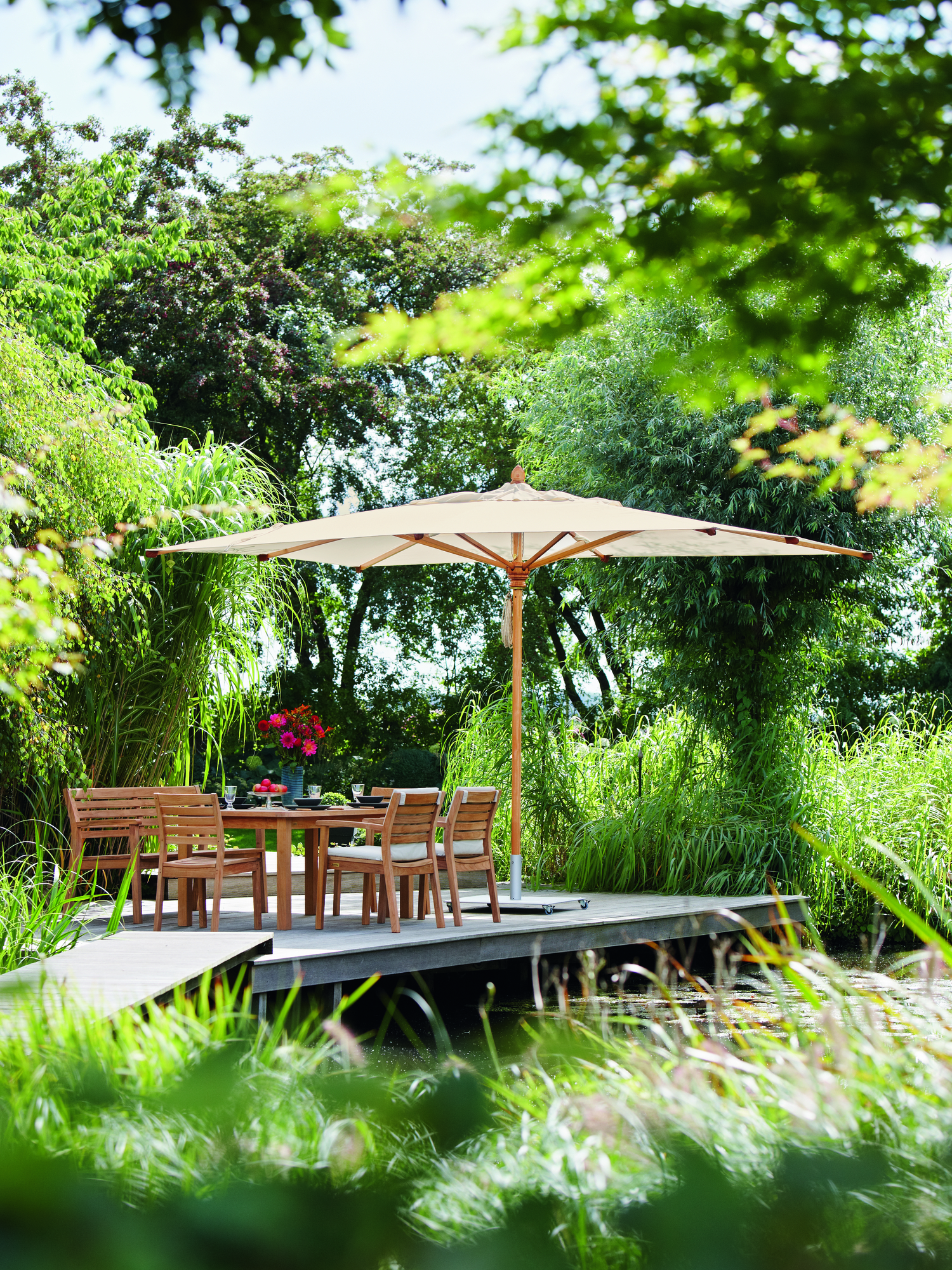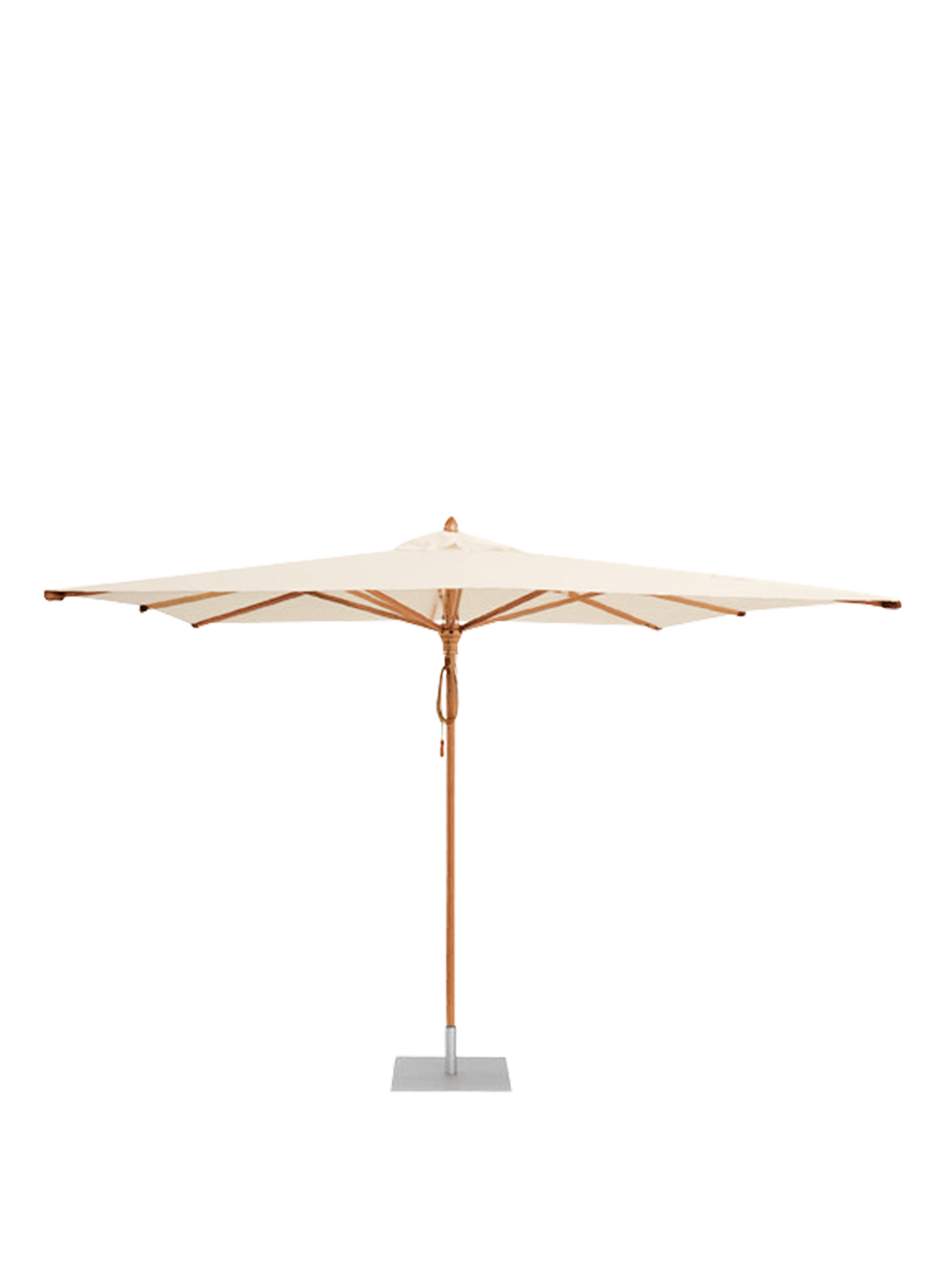 Umbria ist in sieben Größen und einer Vielzahl von Formen erhältlich. Ob rund, quadratisch oder rechteckig - die Schirme eignen sich besonders für größere Tafelrunden.