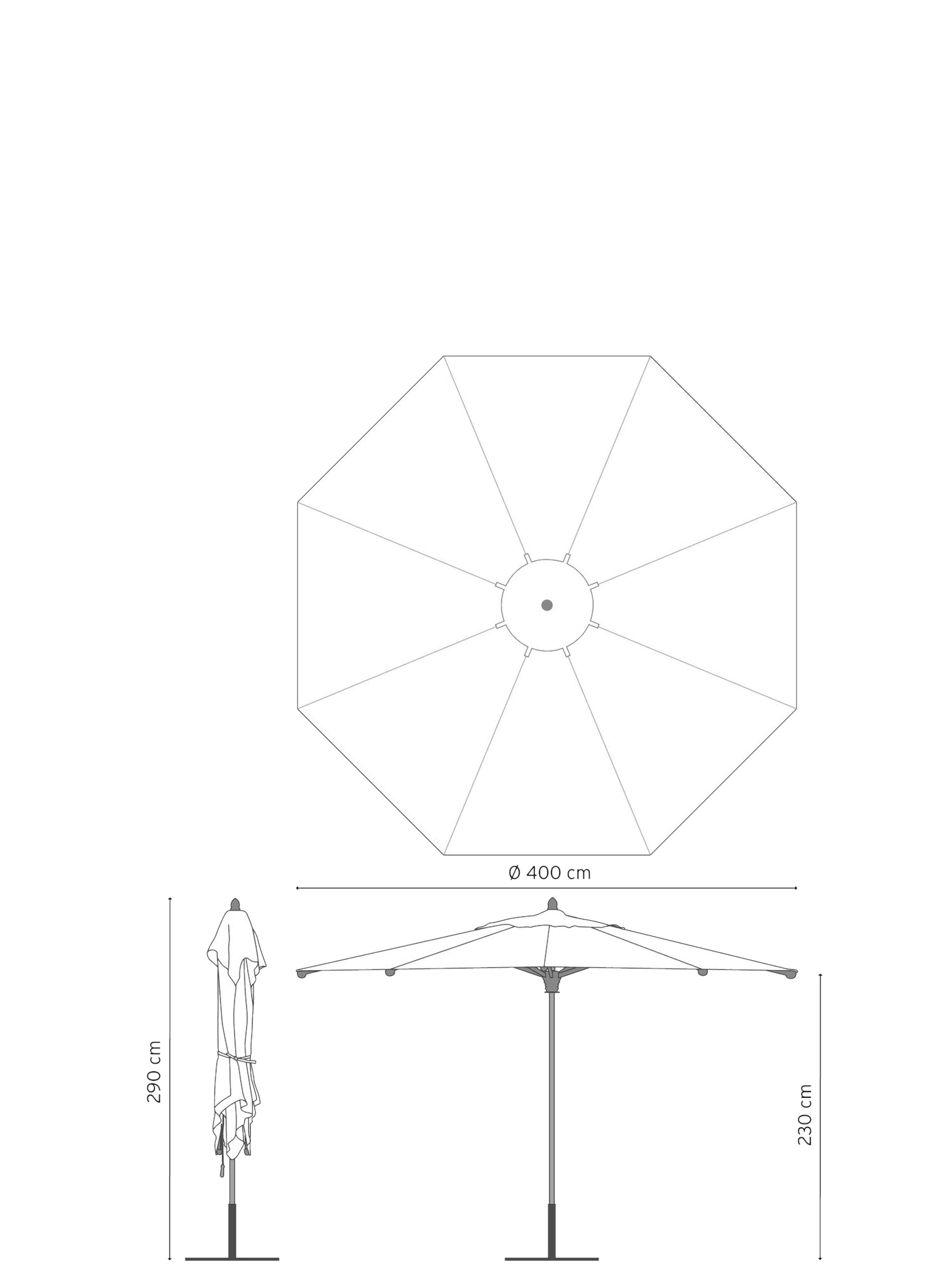 Umbria ist in drei Formen und verschiedenen Größen im Farbton Elfenbein erhältlich. Ob rund, quadratisch oder rechteckig - die Sonnenschirme eignen sich besonders für größere Tafelrunden. Umbria harmoniert sowohl mit klassischen als auch mit modernen Möbeln.