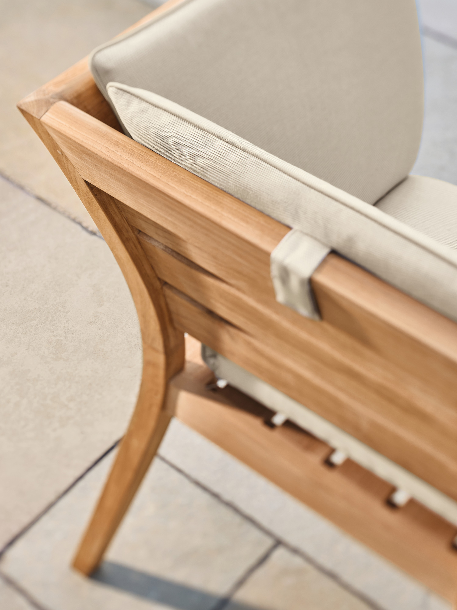 Als Abschlusselement im Valencia Eckmodul oder als Solitär – die Valencia Bank mit einer Armlehne auf der linken Seite lädt ein, Platz zu nehmen. Bei der klassischen Nutzung als Gartenbank verspricht sie behagliche Ruhepausen im Freien. Als Bestandteil des modularen Systems weckt sie beste Erinnerungen an frühere Zeiten. Die Valencia Eckbank aus hochwertigem Teakholz versammelt lebendige Runden um passende Tische – und sorgt so dafür, dass neue Erinnerungen geschrieben werden.