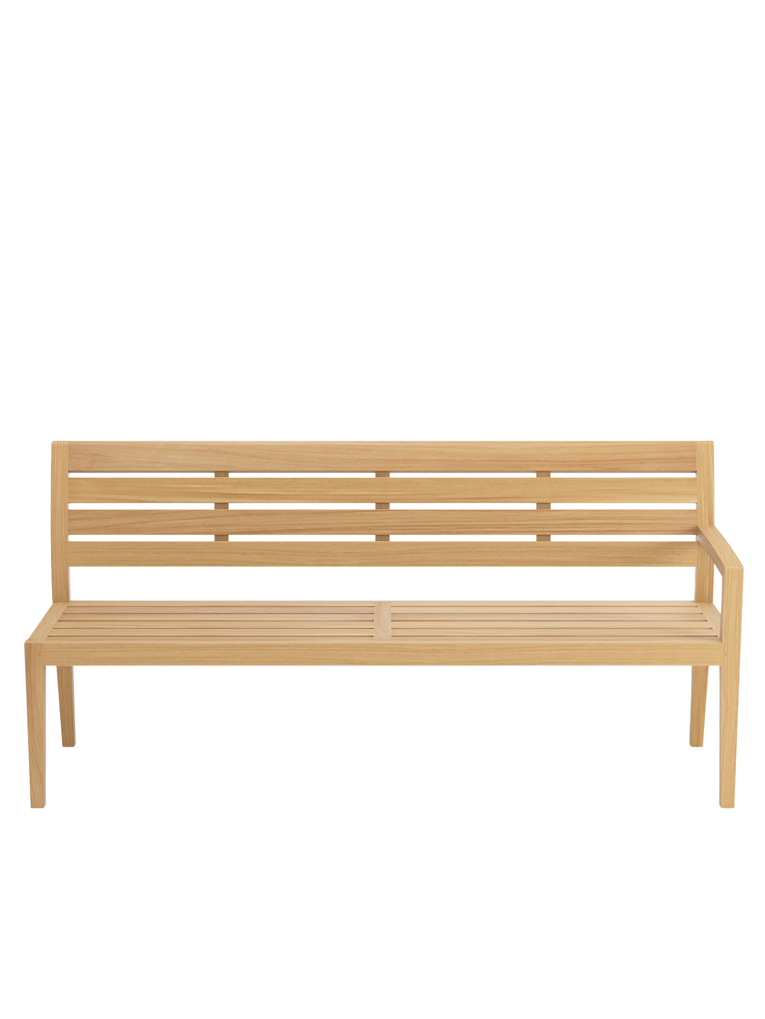Die Valencia Bank mit einer Armlehne auf der linken Seite ist Bestandteil eines modularen Systems und kann zu vielfältigen Eckbänken kombiniert werden.