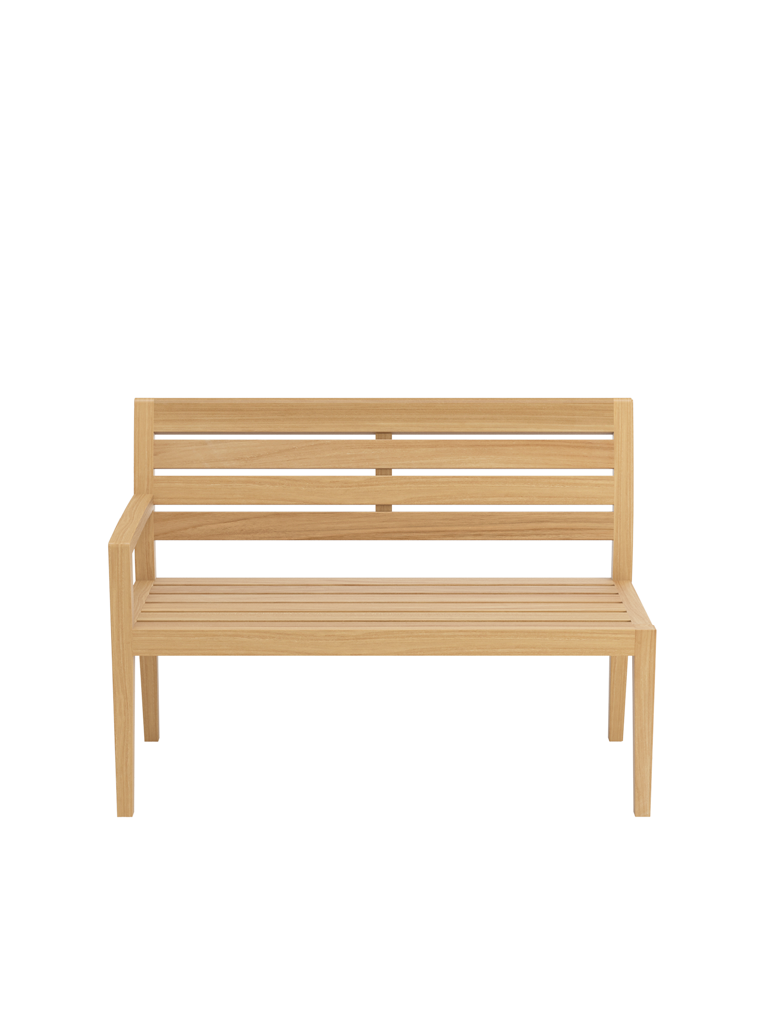 Die Valencia Bank mit einer Armlehne auf der rechten Seite ist Bestandteil eines modularen Systems und kann zu vielfältigen Eckbänken kombiniert werden.