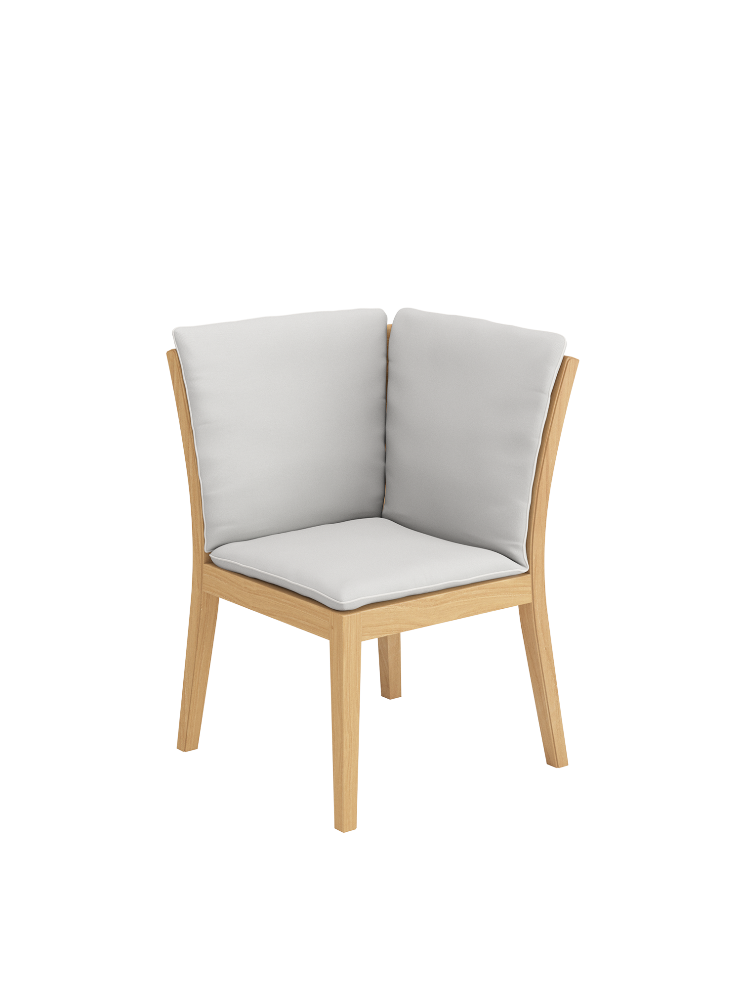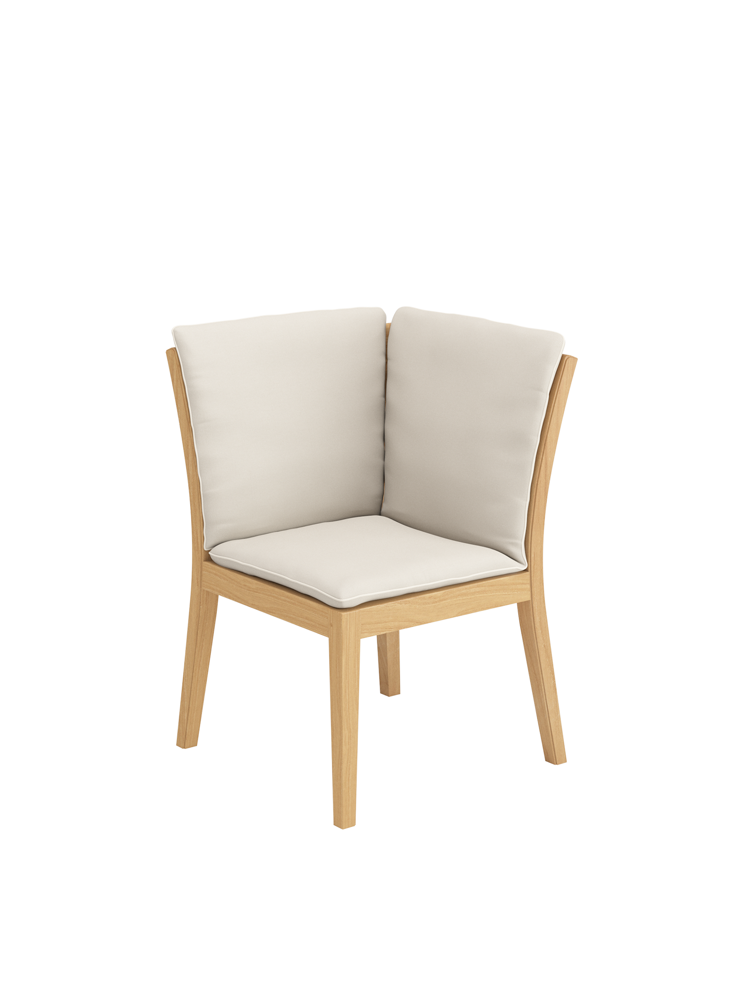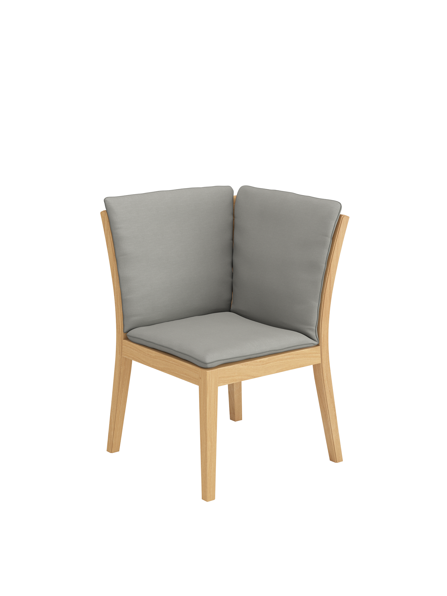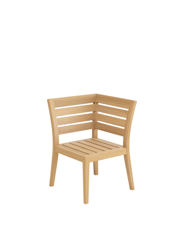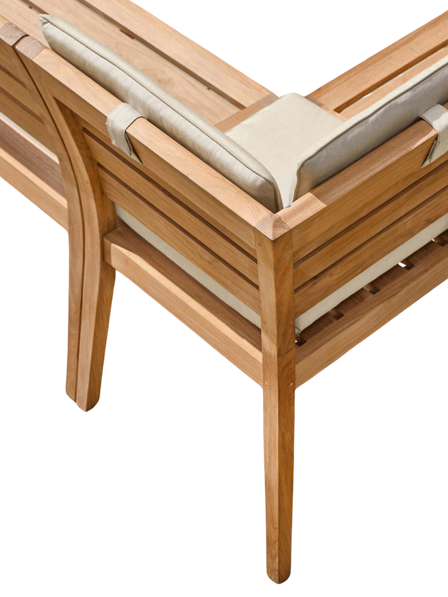 Mit dem ebenfalls aus hochwertigem Teakholz gefertigten Eckelement werden die Bänke der Valencia Kollektion zur beliebig erweiterbaren Eckbank.