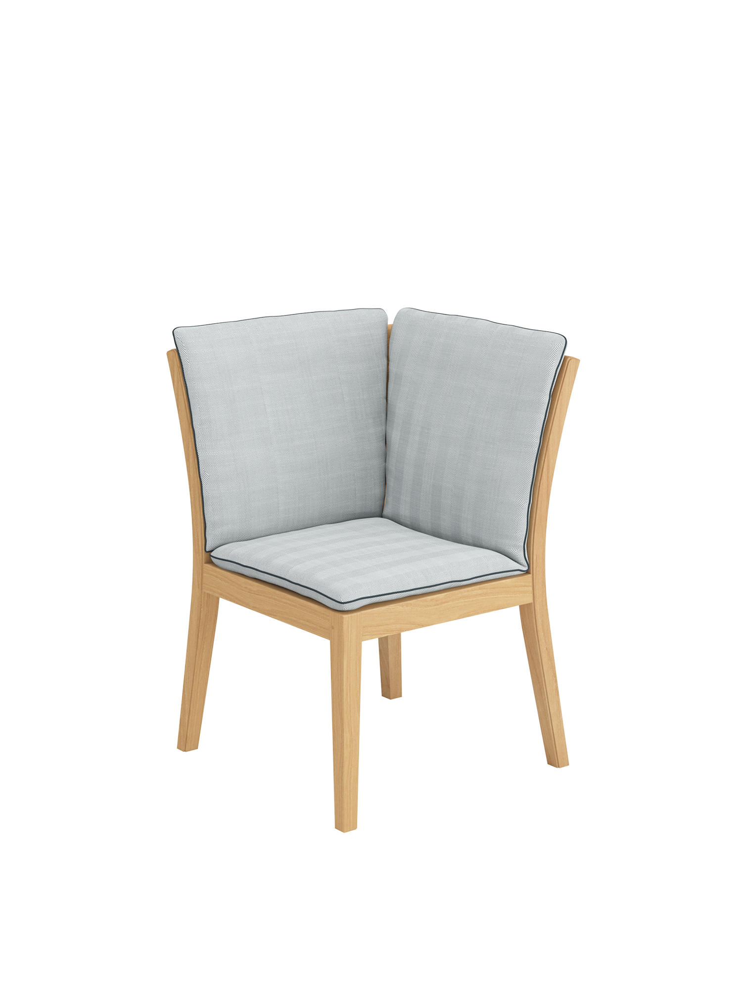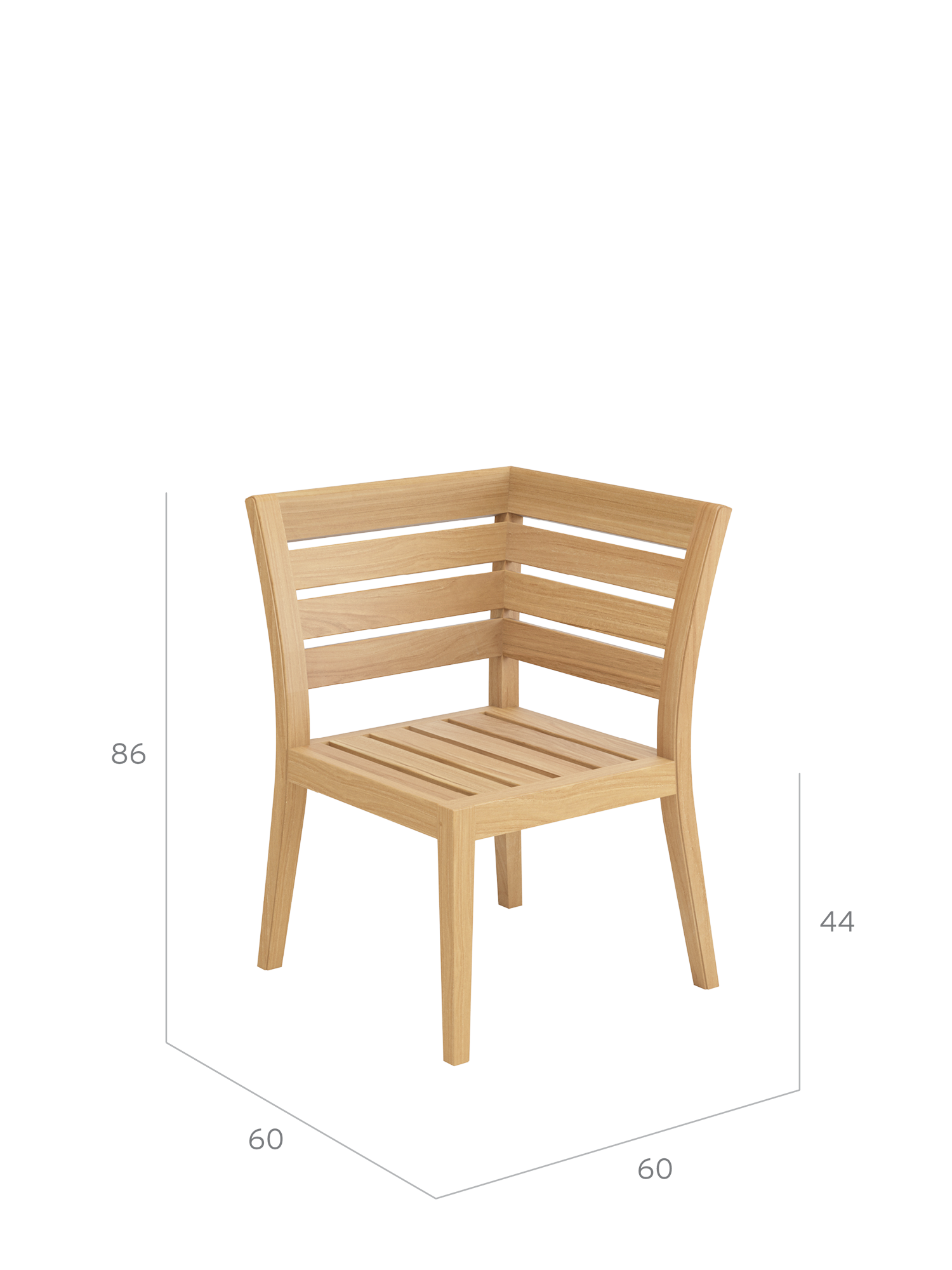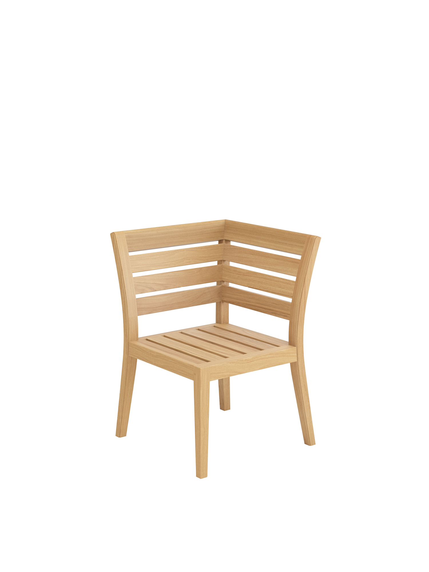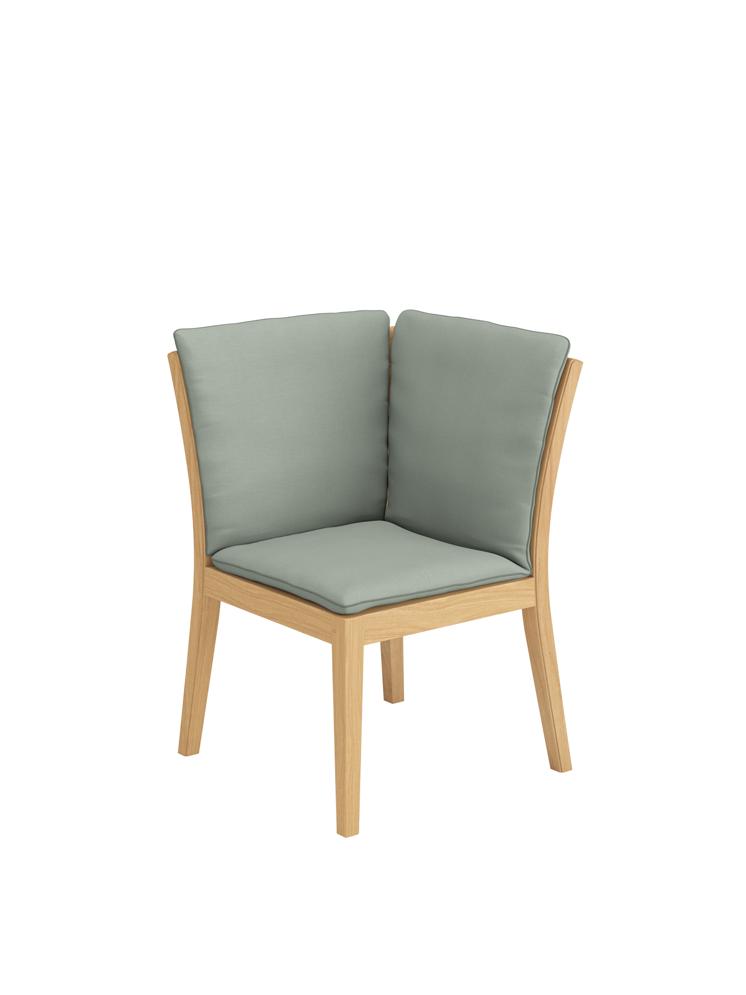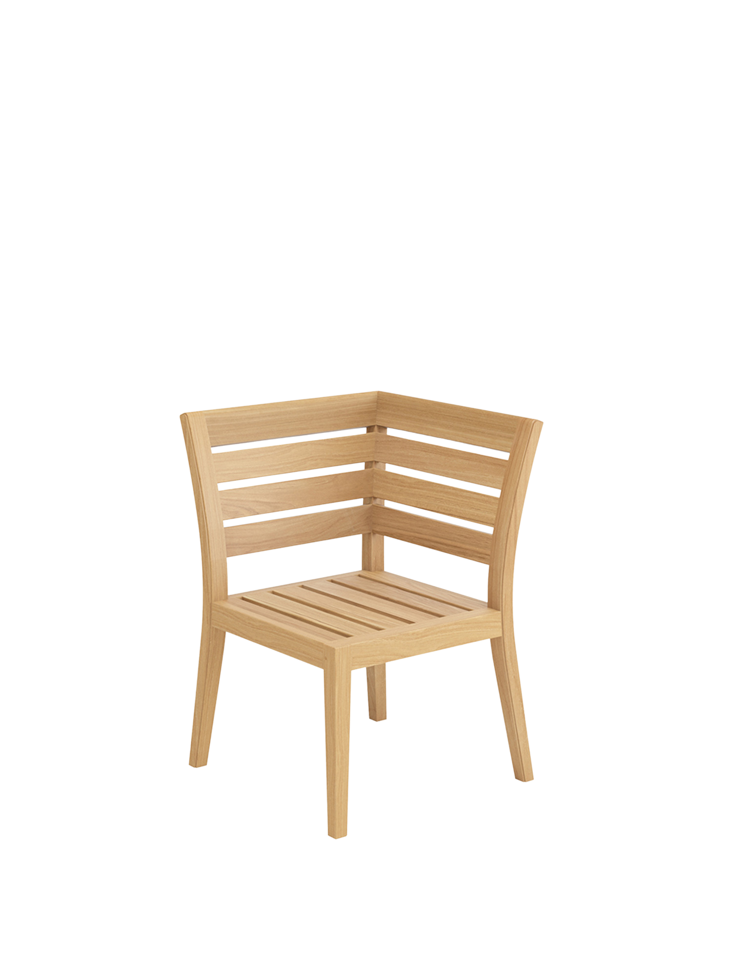 Mit dem ebenfalls aus hochwertigem Teakholz gefertigten Eckelement werden die Bänke der Valencia Kollektion zur beliebig erweiterbaren Eckbank.