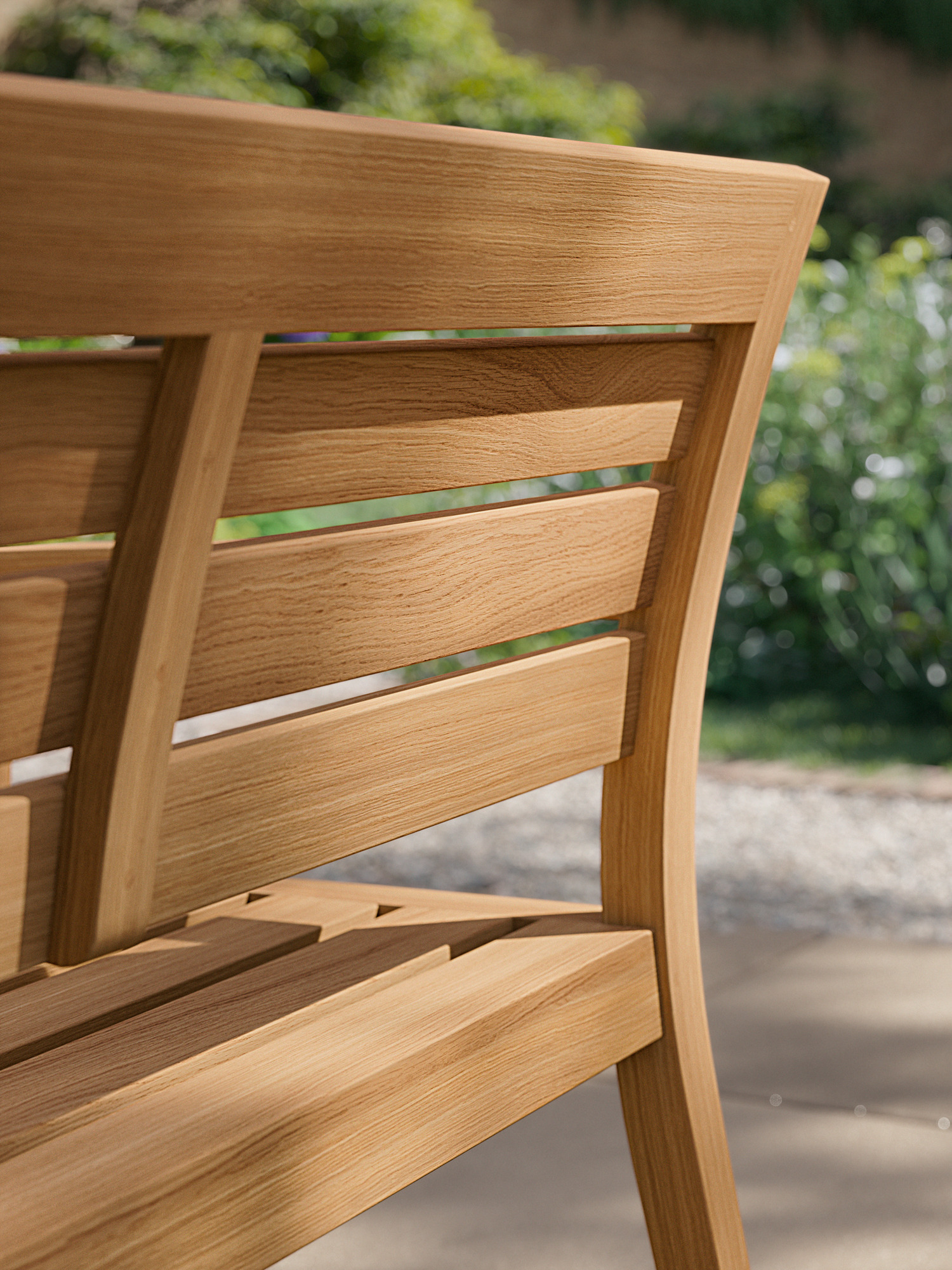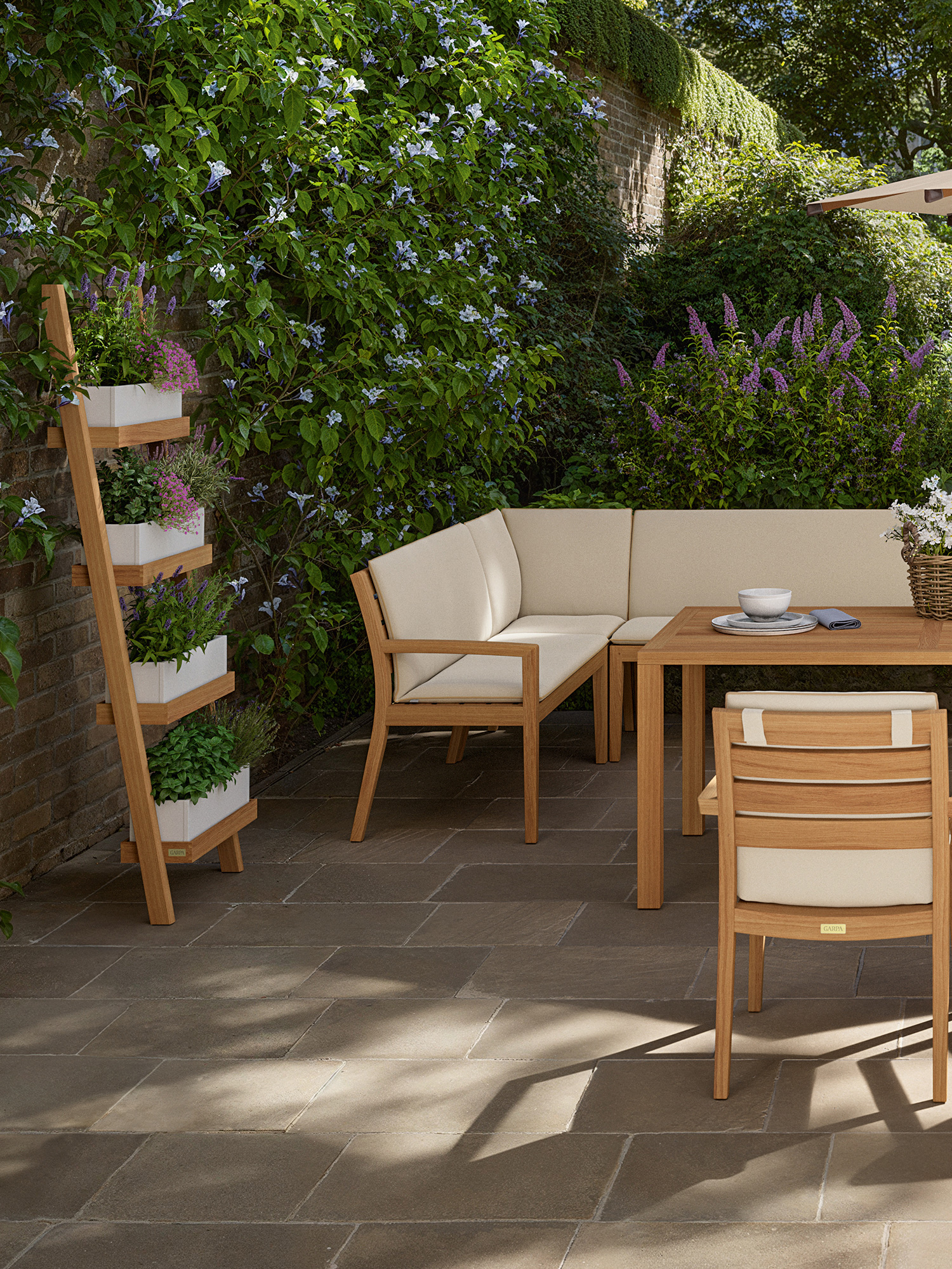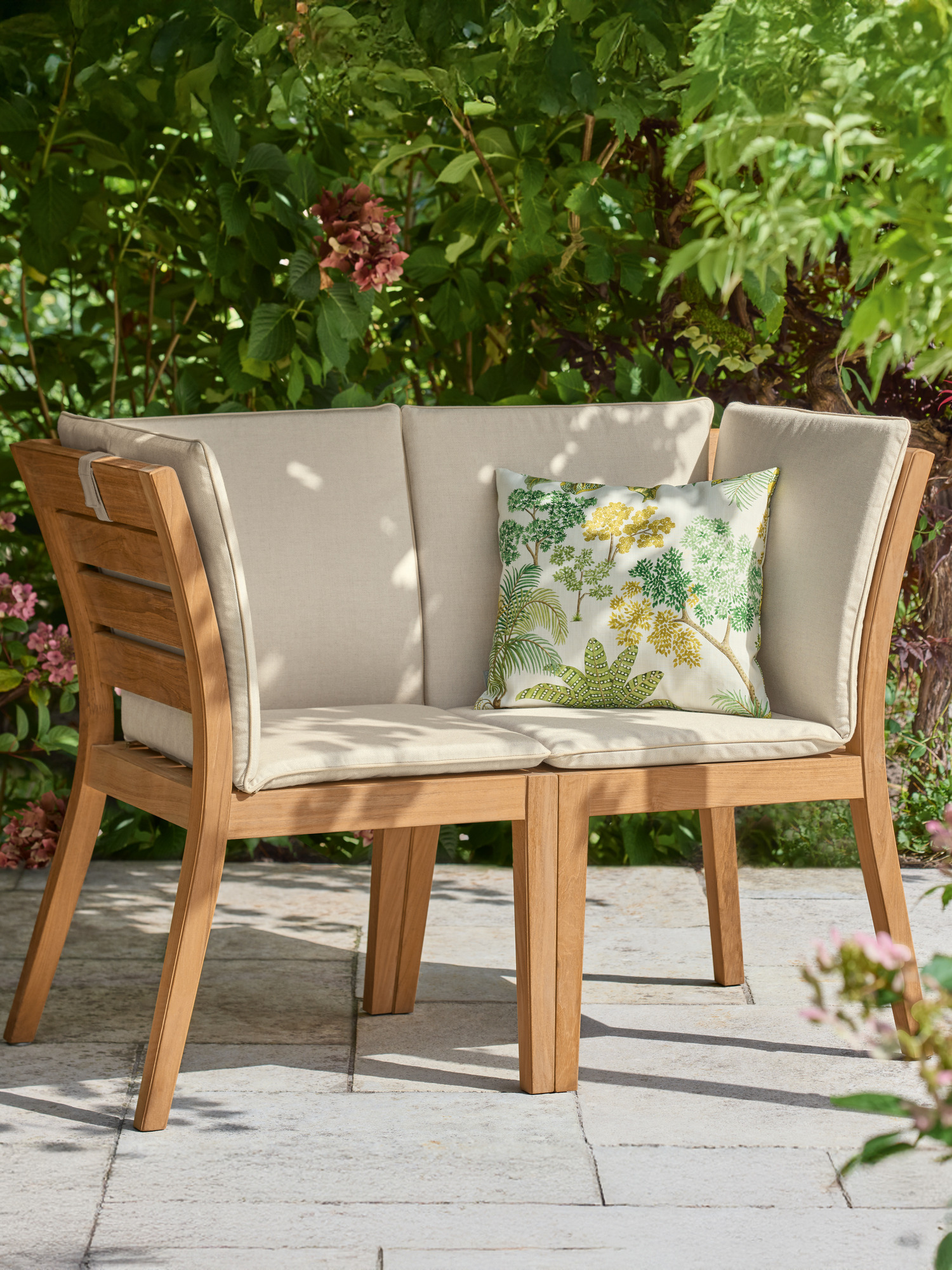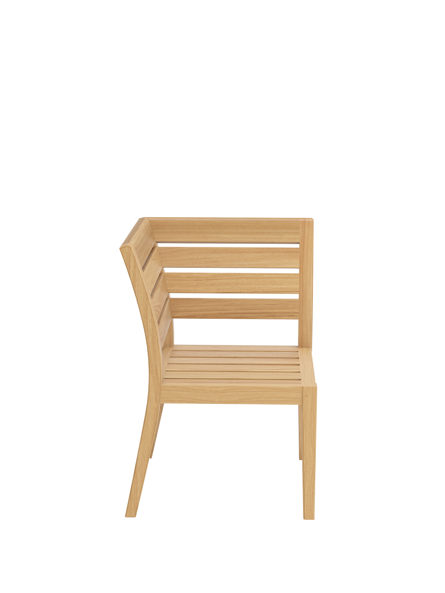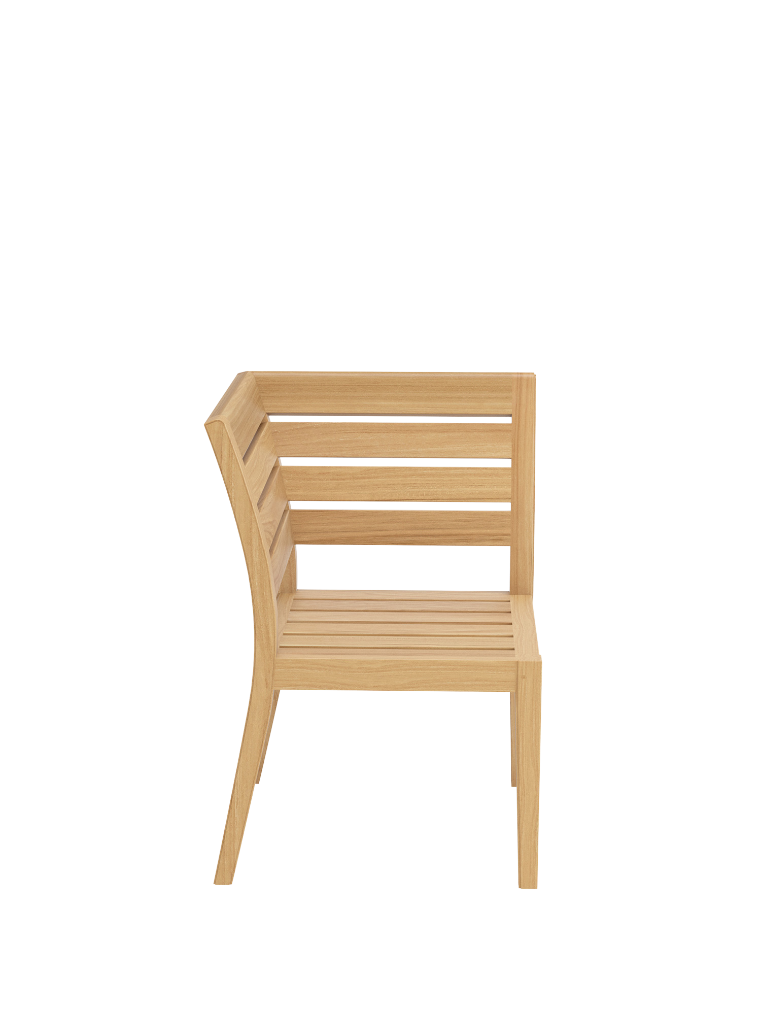 Mit dem ebenfalls aus hochwertigem Teakholz gefertigten Eckelement werden die Bänke der Valencia Kollektion zur beliebig erweiterbaren Eckbank.