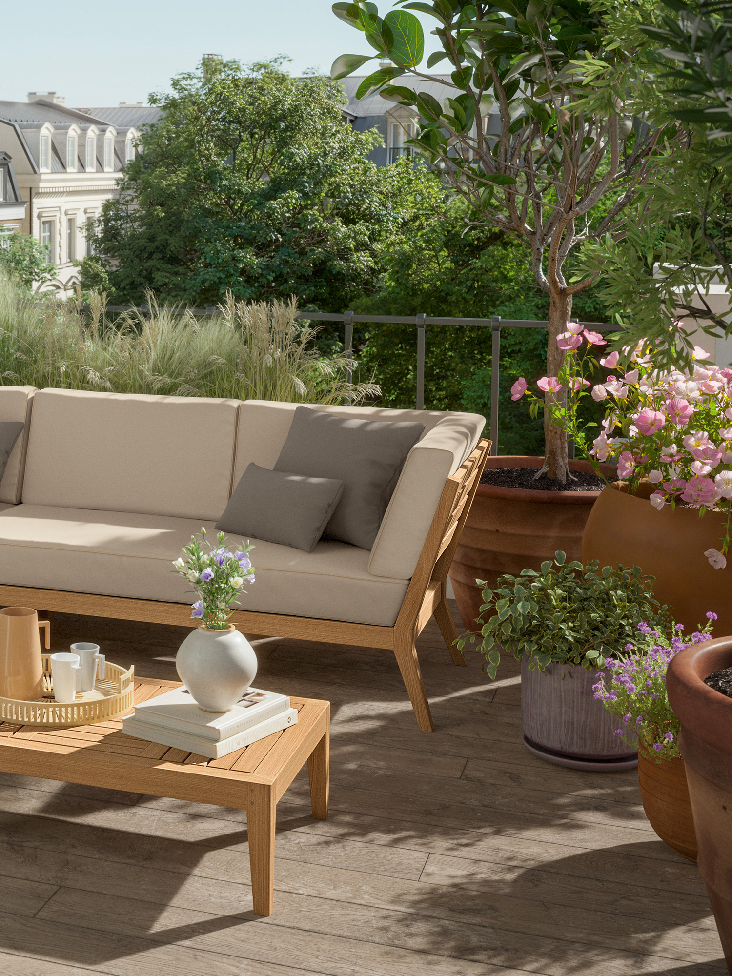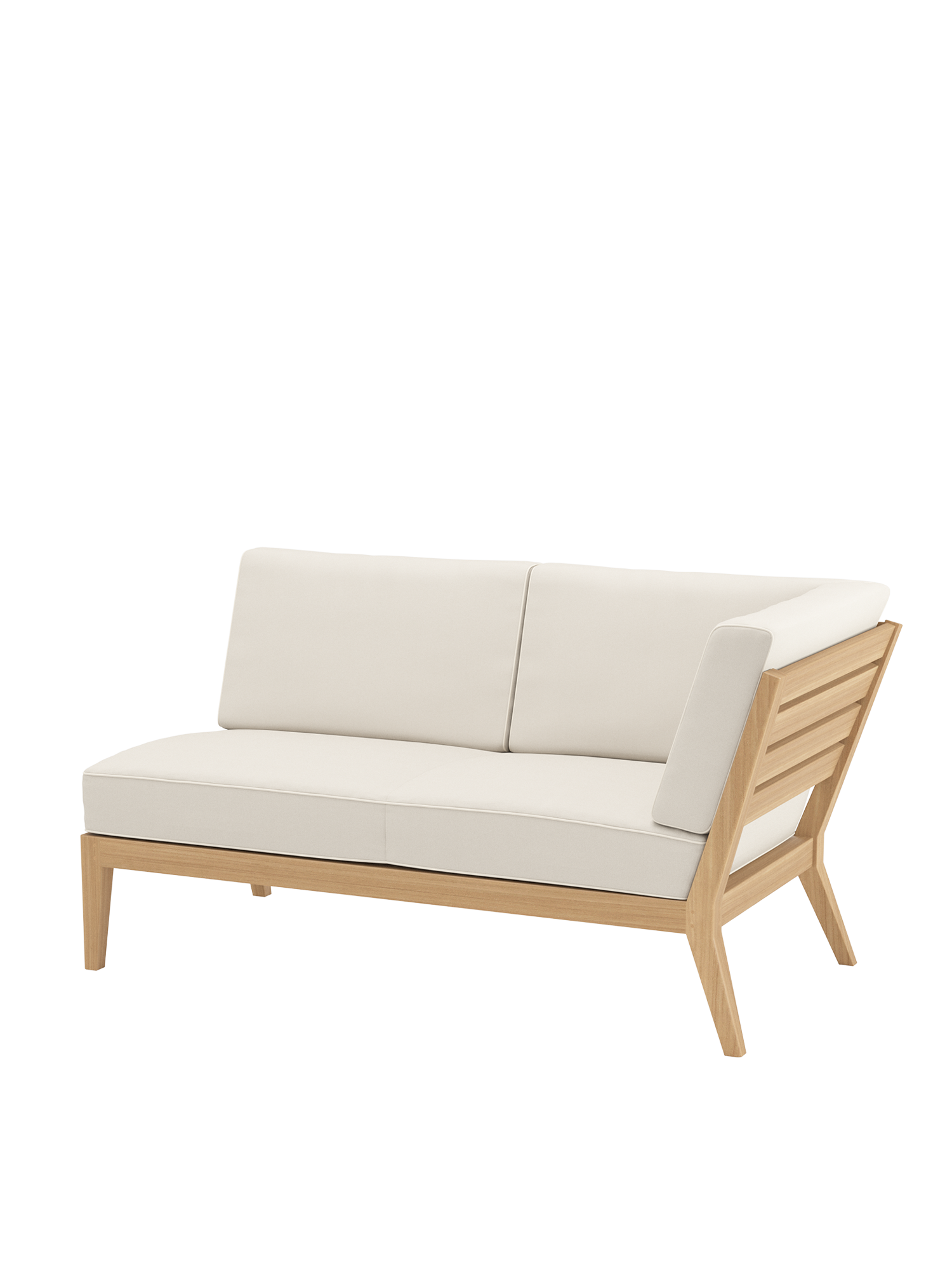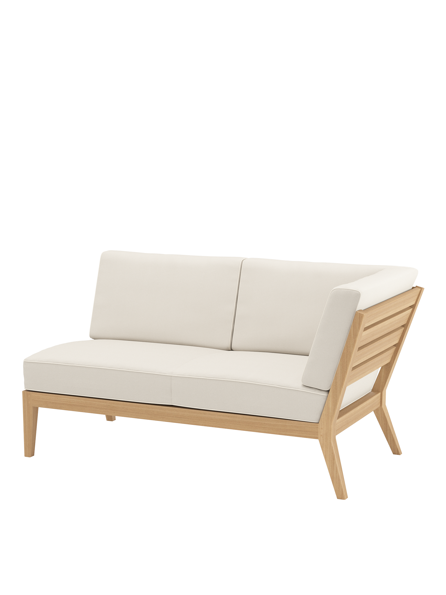 Am Ufer des Schwimmbeckens oder am Rand der Terrasse, auf einem Stadtbalkon oder mitten im Garten: Mit Elementen der Valencia Lounge findet ein Ruhepol in jeder luftigen Lage zur angemessenen Größe. Extra breit und besonders tief, bieten Chaiselongues, Mittelelemente und Eckmodule aus Teak mit ihren quer verlaufenden Sitz- und Rückenlehnen und ausgestellten Beinen viel Raum zum Anlehnen. Dicke, von Kedern gerahmte Polster und Federkissen in frischen Farben setzen dazu sommerliche Akzente.