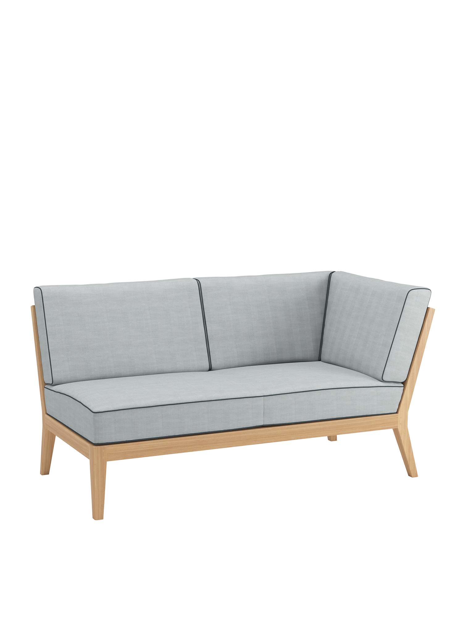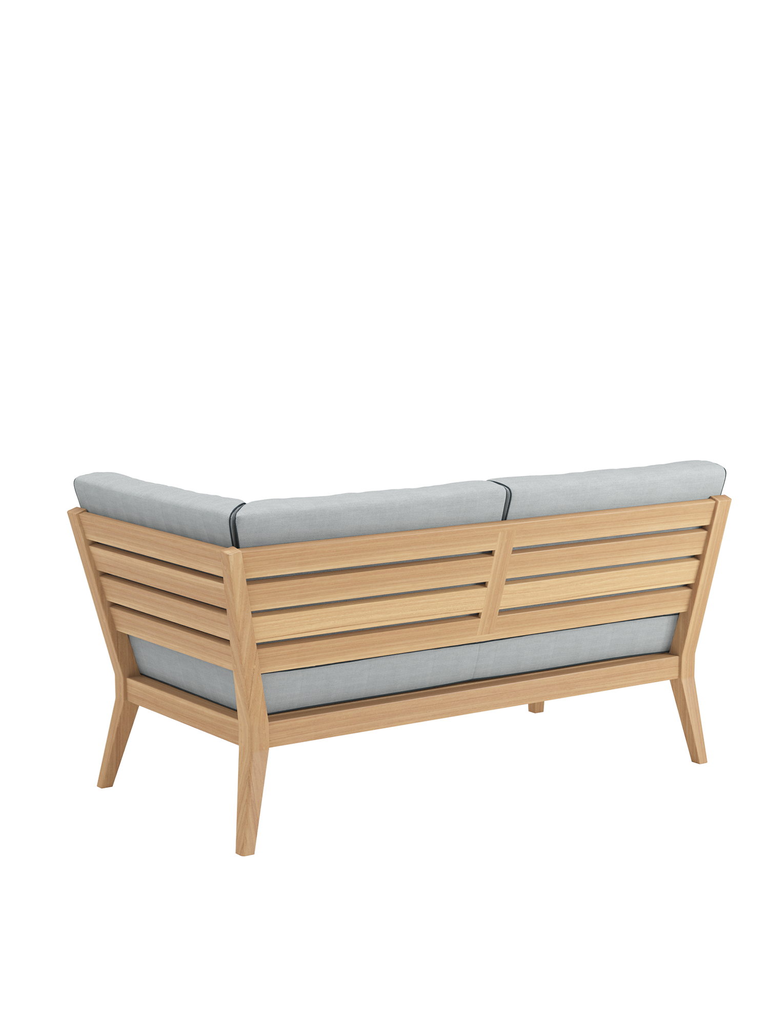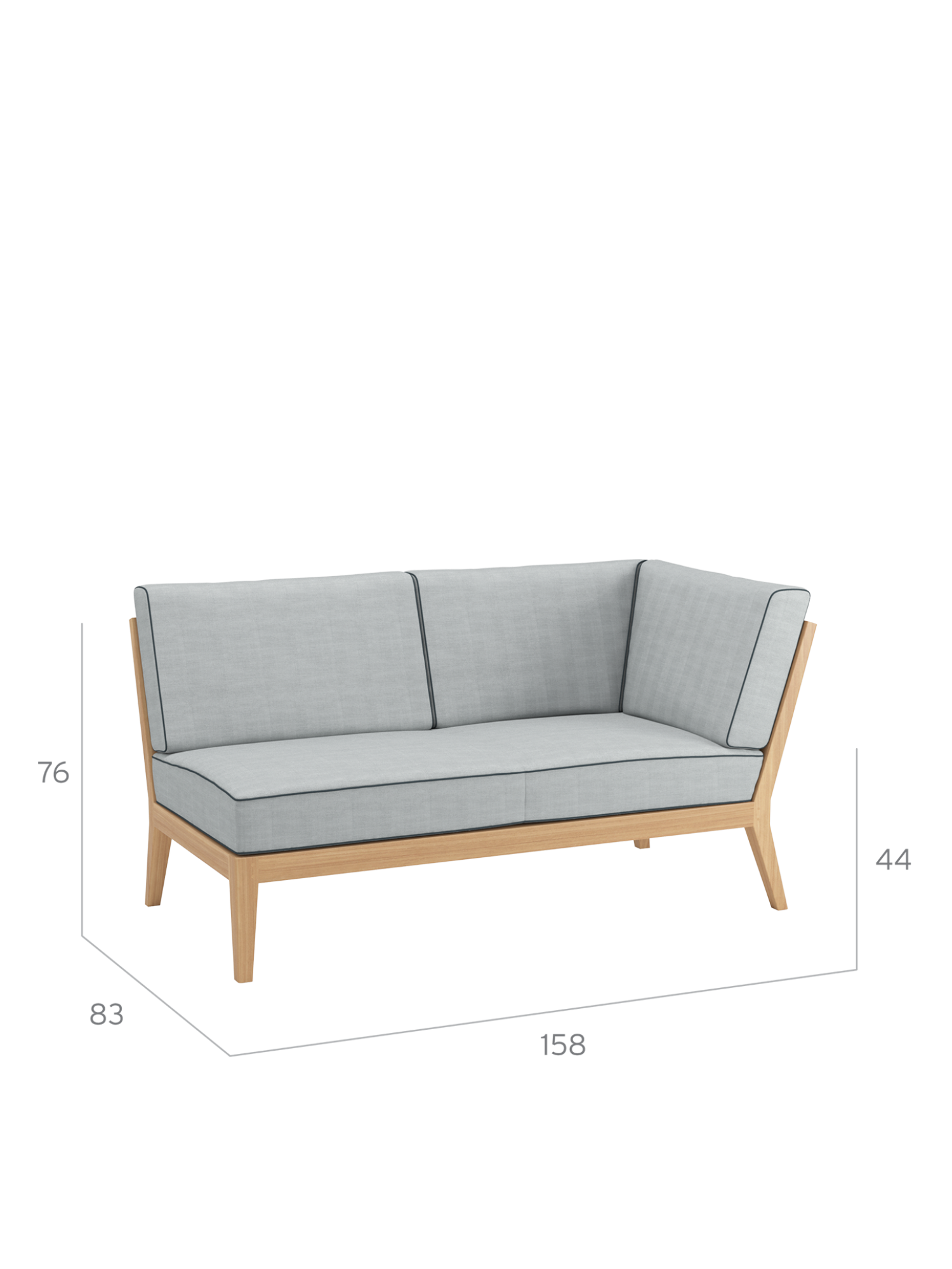 Am Ufer des Schwimmbeckens oder am Rand der Terrasse, auf einem Stadtbalkon oder mitten im Garten: Mit Elementen der Valencia Lounge findet ein Ruhepol in jeder luftigen Lage zur angemessenen Größe. Extra breit und besonders tief, bieten Chaiselongues, Mittelelemente und Eckmodule aus Teak mit ihren quer verlaufenden Sitz- und Rückenlehnen und ausgestellten Beinen viel Raum zum Anlehnen. Dicke, von Kedern gerahmte Polster und Federkissen in frischen Farben setzen dazu sommerliche Akzente.