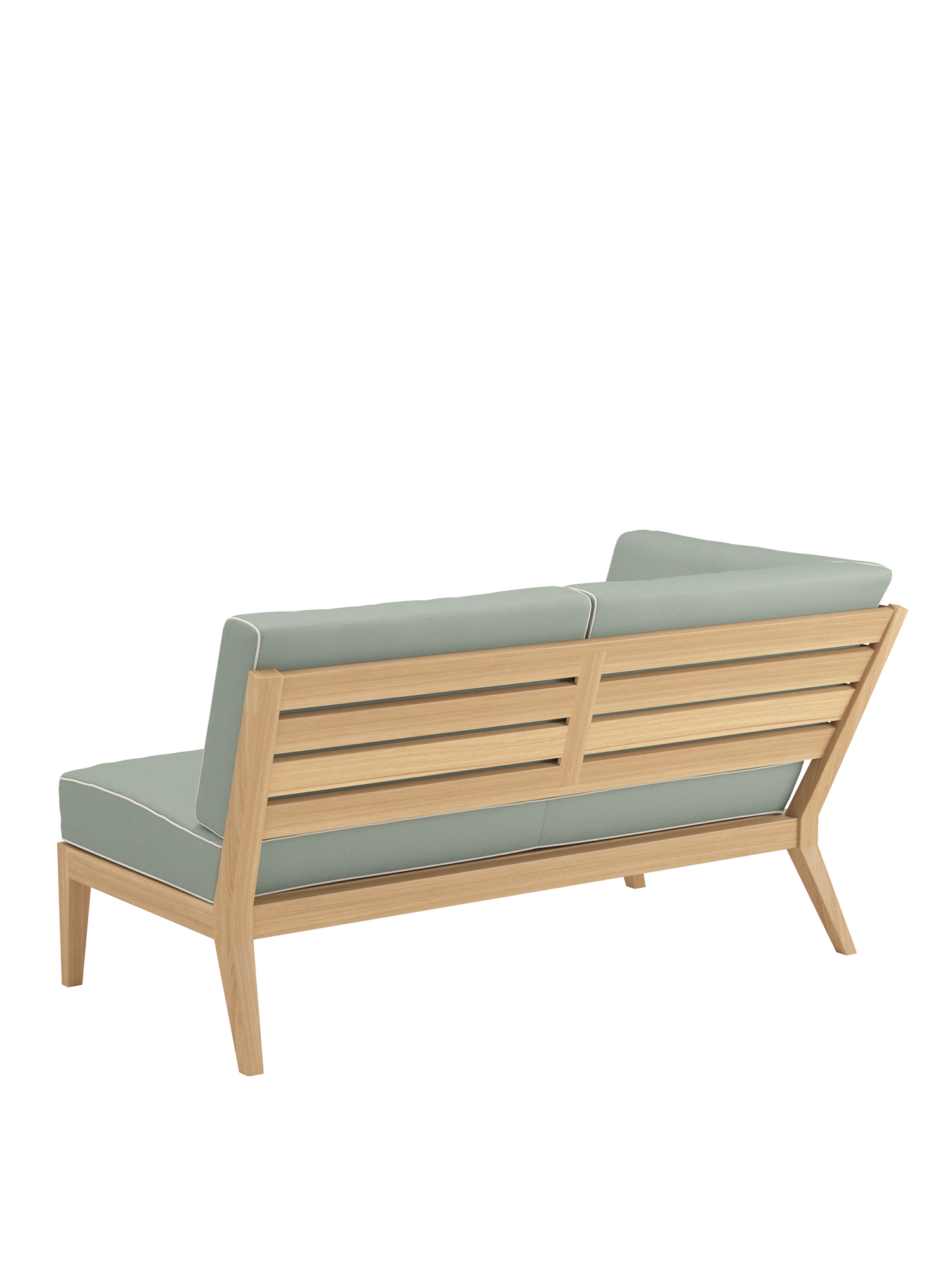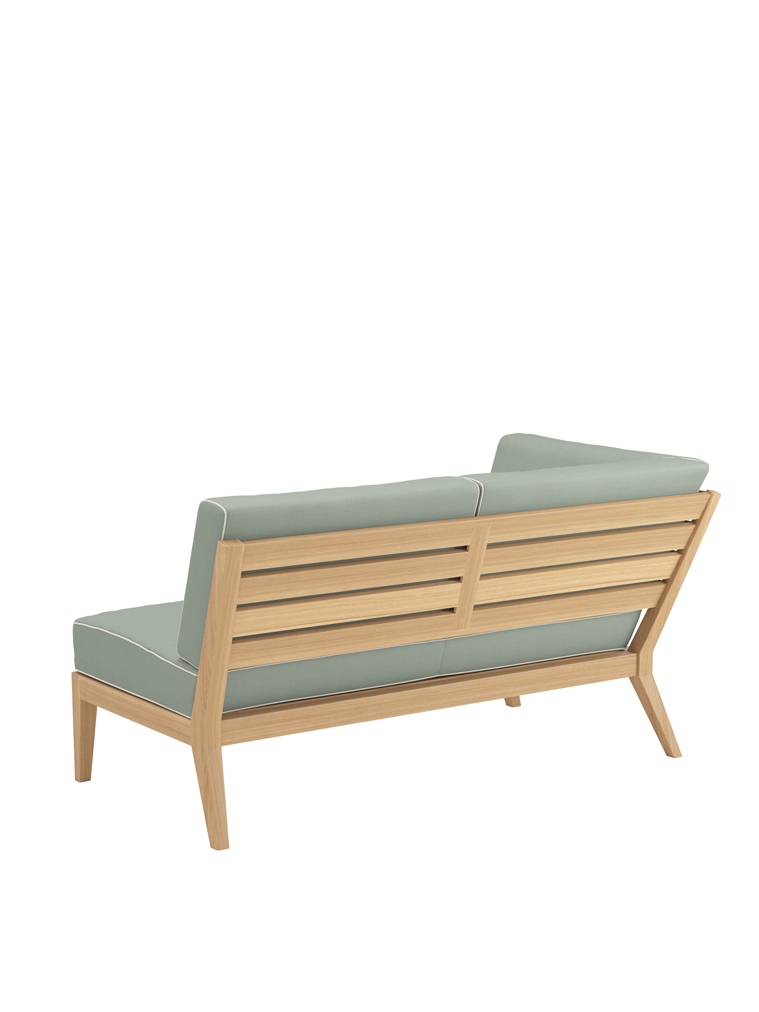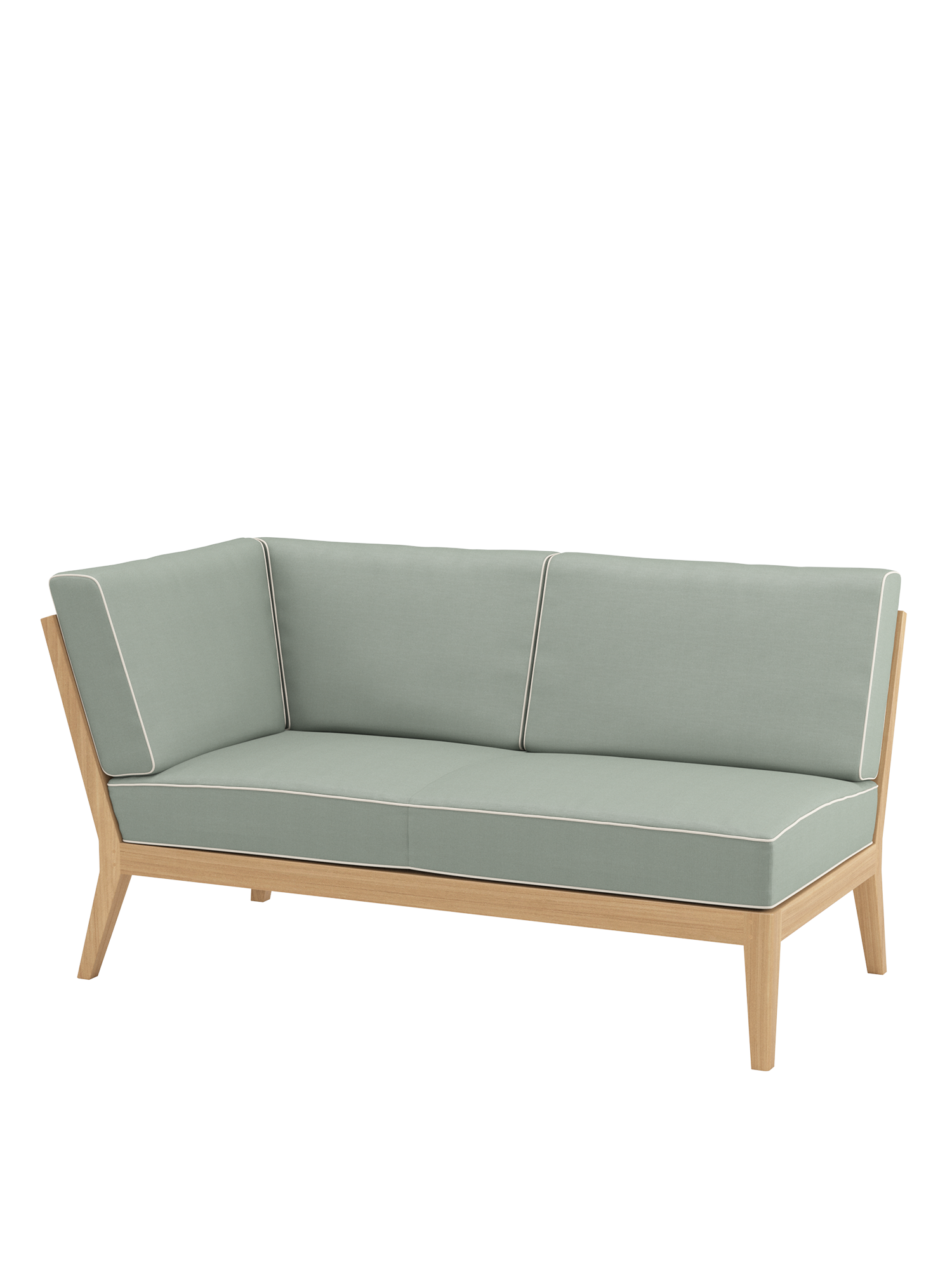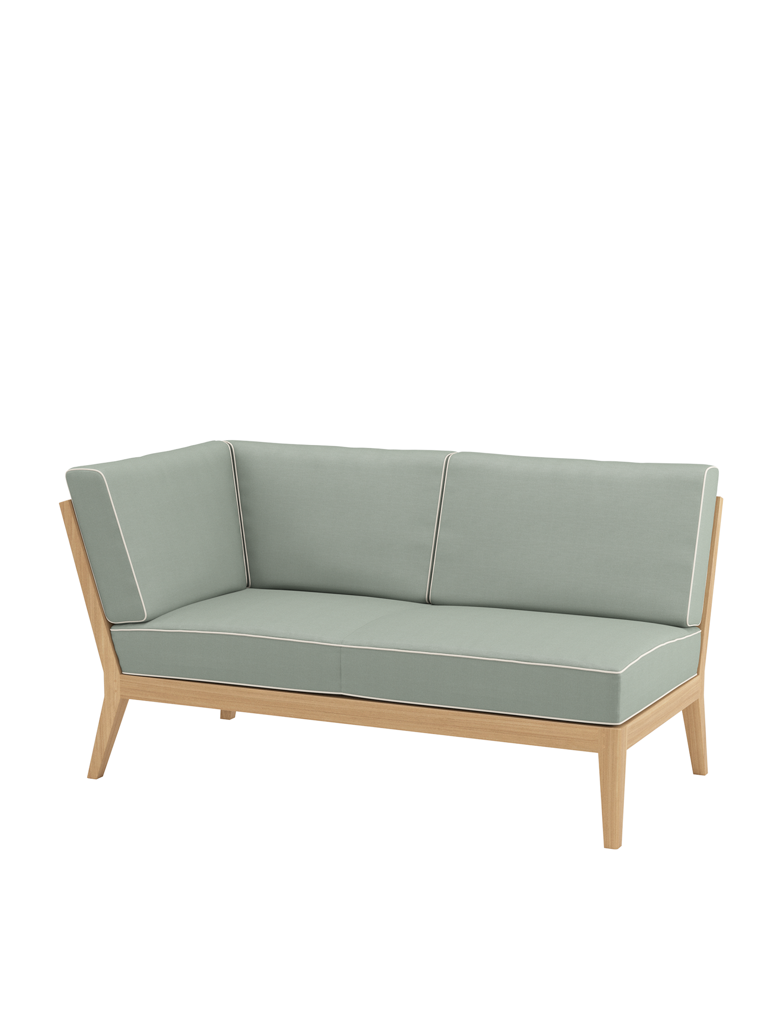 Am Ufer des Schwimmbeckens oder am Rand der Terrasse, auf einem Stadtbalkon oder mitten im Garten: Mit Elementen der Valencia Lounge findet ein Ruhepol in jeder luftigen Lage zur angemessenen Größe. Extra breit und besonders tief, bieten Chaiselongues, Mittelelemente und Eckmodule aus Teak mit ihren quer verlaufenden Sitz- und Rückenlehnen und ausgestellten Beinen viel Raum zum Anlehnen. Dicke, von Kedern gerahmte Polster und Federkissen in frischen Farben setzen dazu sommerliche Akzente.
