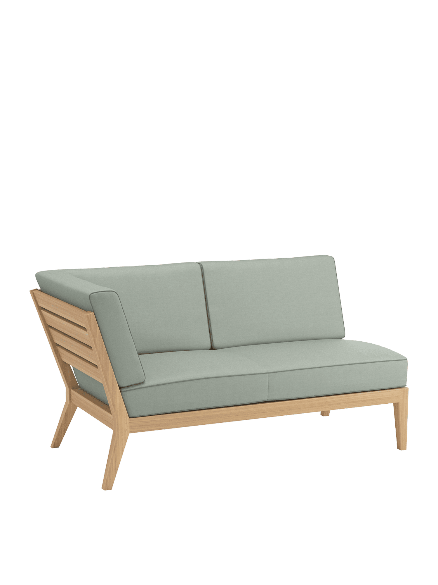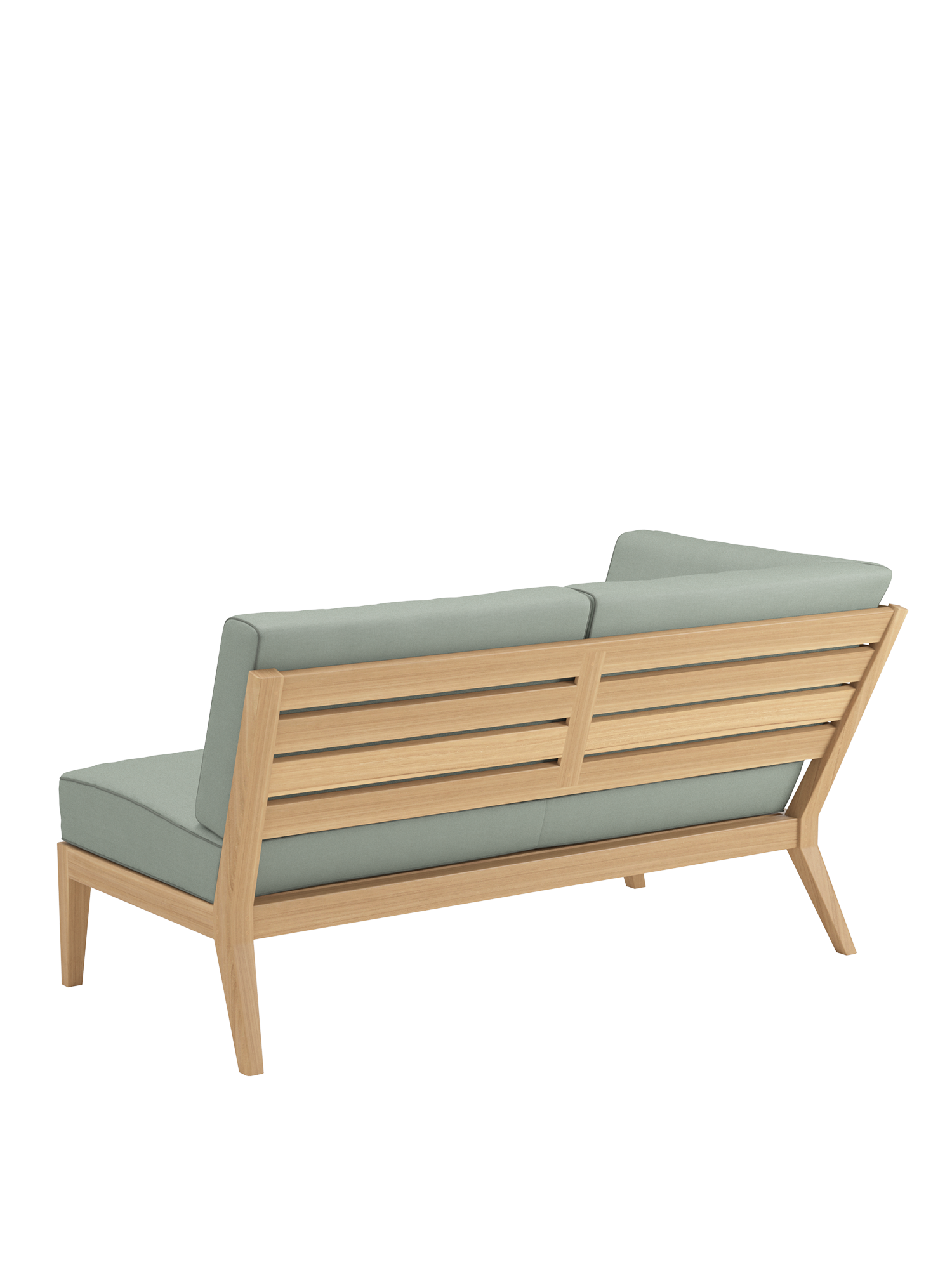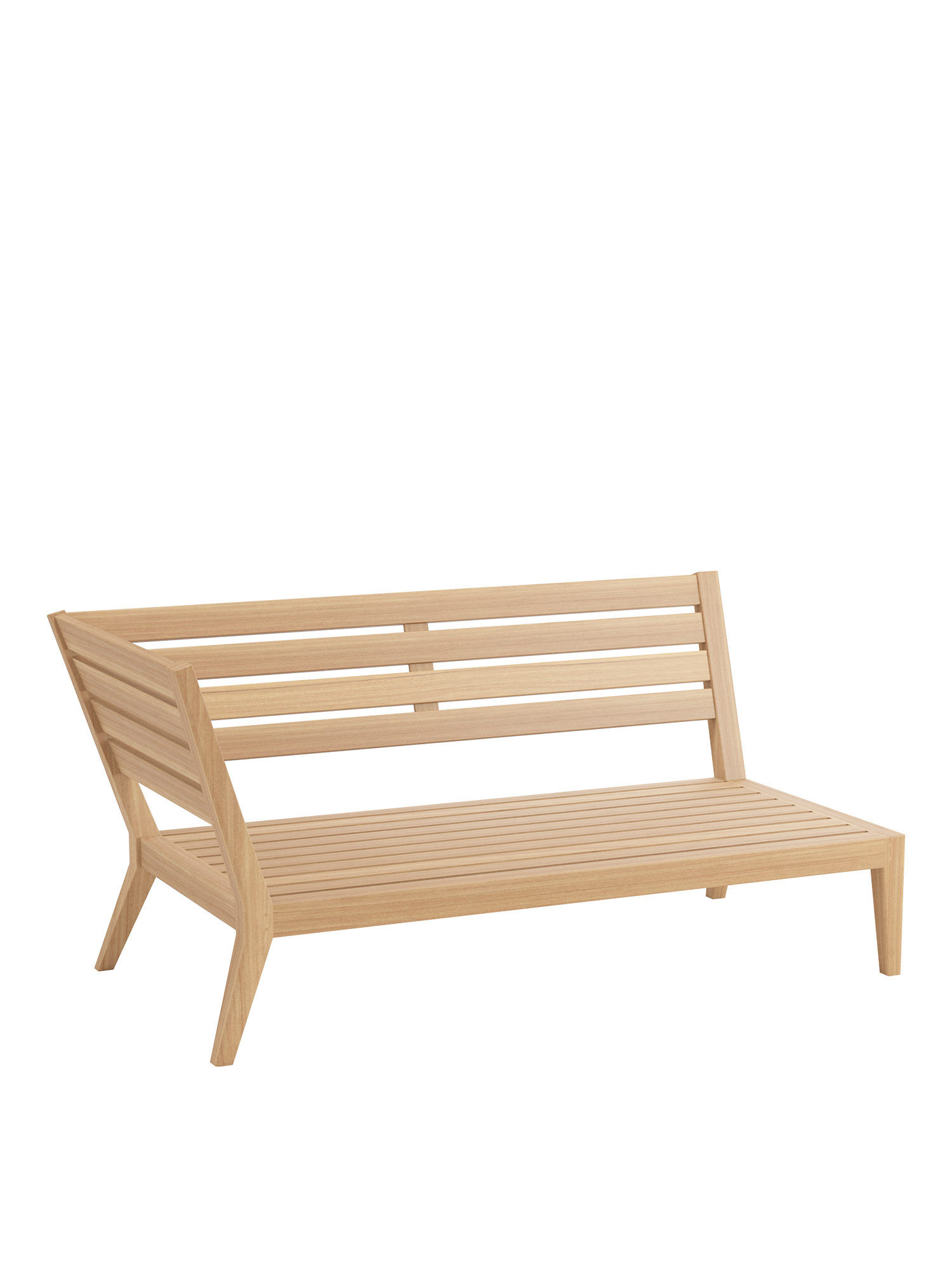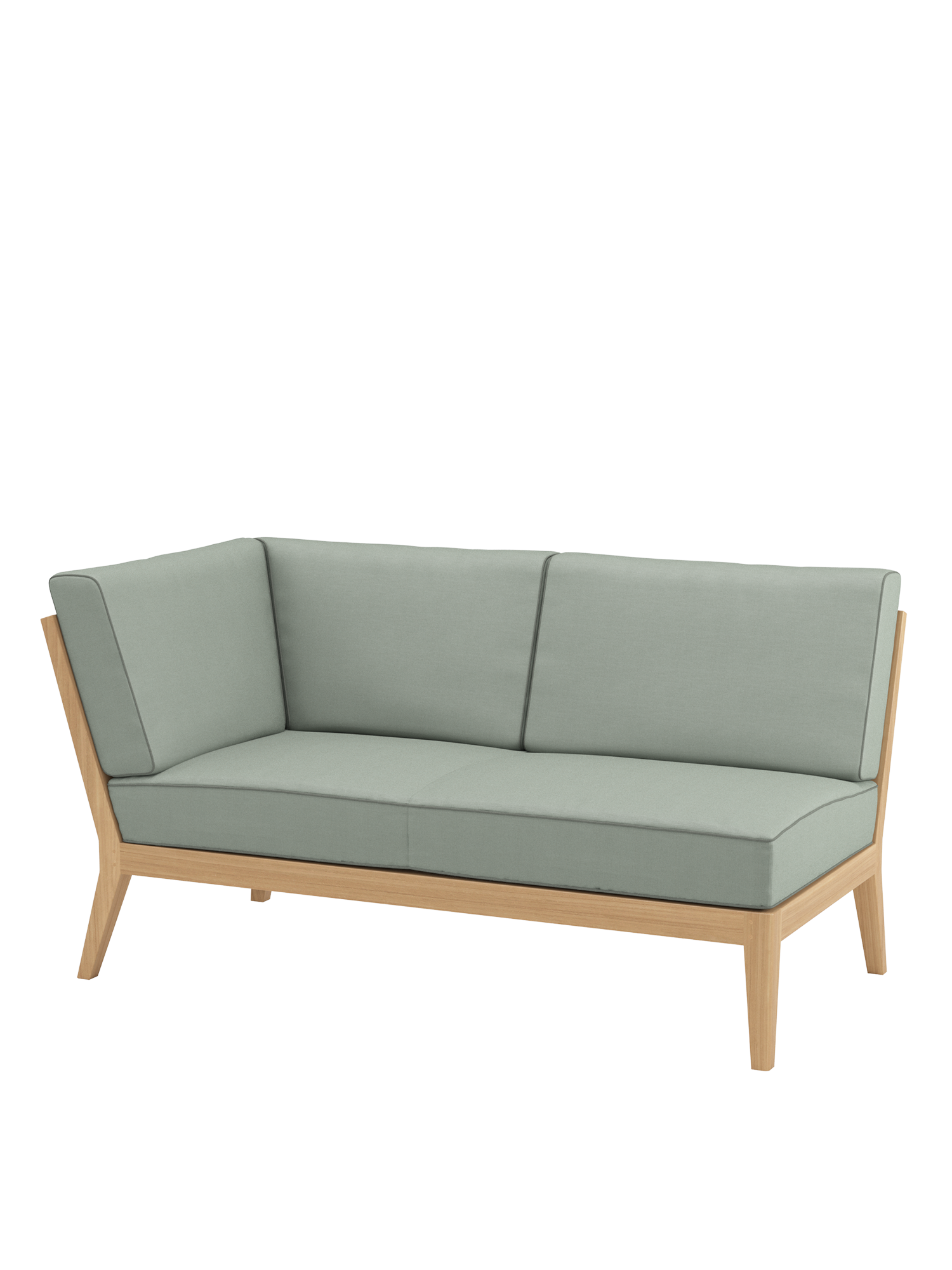 Am Ufer des Schwimmbeckens oder am Rand der Terrasse, auf einem Stadtbalkon oder mitten im Garten: Mit Elementen der Valencia Lounge findet ein Ruhepol in jeder luftigen Lage zur angemessenen Größe. Extra breit und besonders tief, bieten Chaiselongues, Mittelelemente und Eckmodule aus Teak mit ihren quer verlaufenden Sitz- und Rückenlehnen und ausgestellten Beinen viel Raum zum Anlehnen. Dicke, von Kedern gerahmte Polster und Federkissen in frischen Farben setzen dazu sommerliche Akzente.