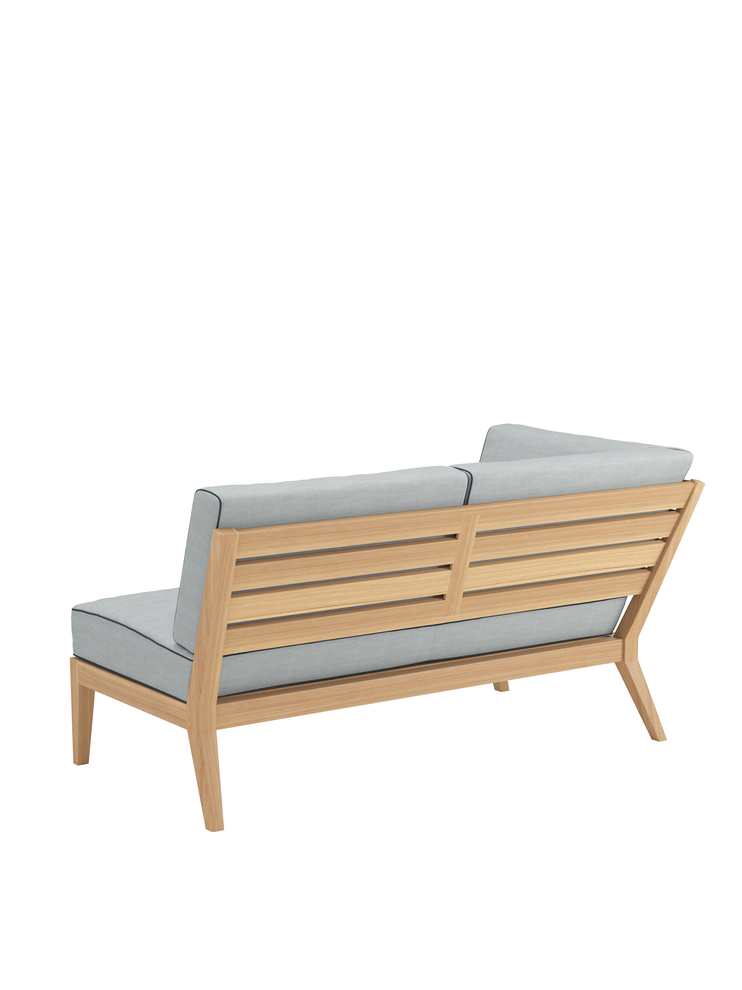 Am Ufer des Schwimmbeckens oder am Rand der Terrasse, auf einem Stadtbalkon oder mitten im Garten: Mit Elementen der Valencia Lounge findet ein Ruhepol in jeder luftigen Lage zur angemessenen Größe. Extra breit und besonders tief, bieten Chaiselongues, Mittelelemente und Eckmodule aus Teak mit ihren quer verlaufenden Sitz- und Rückenlehnen und ausgestellten Beinen viel Raum zum Anlehnen. Dicke, von Kedern gerahmte Polster und Federkissen in frischen Farben setzen dazu sommerliche Akzente.