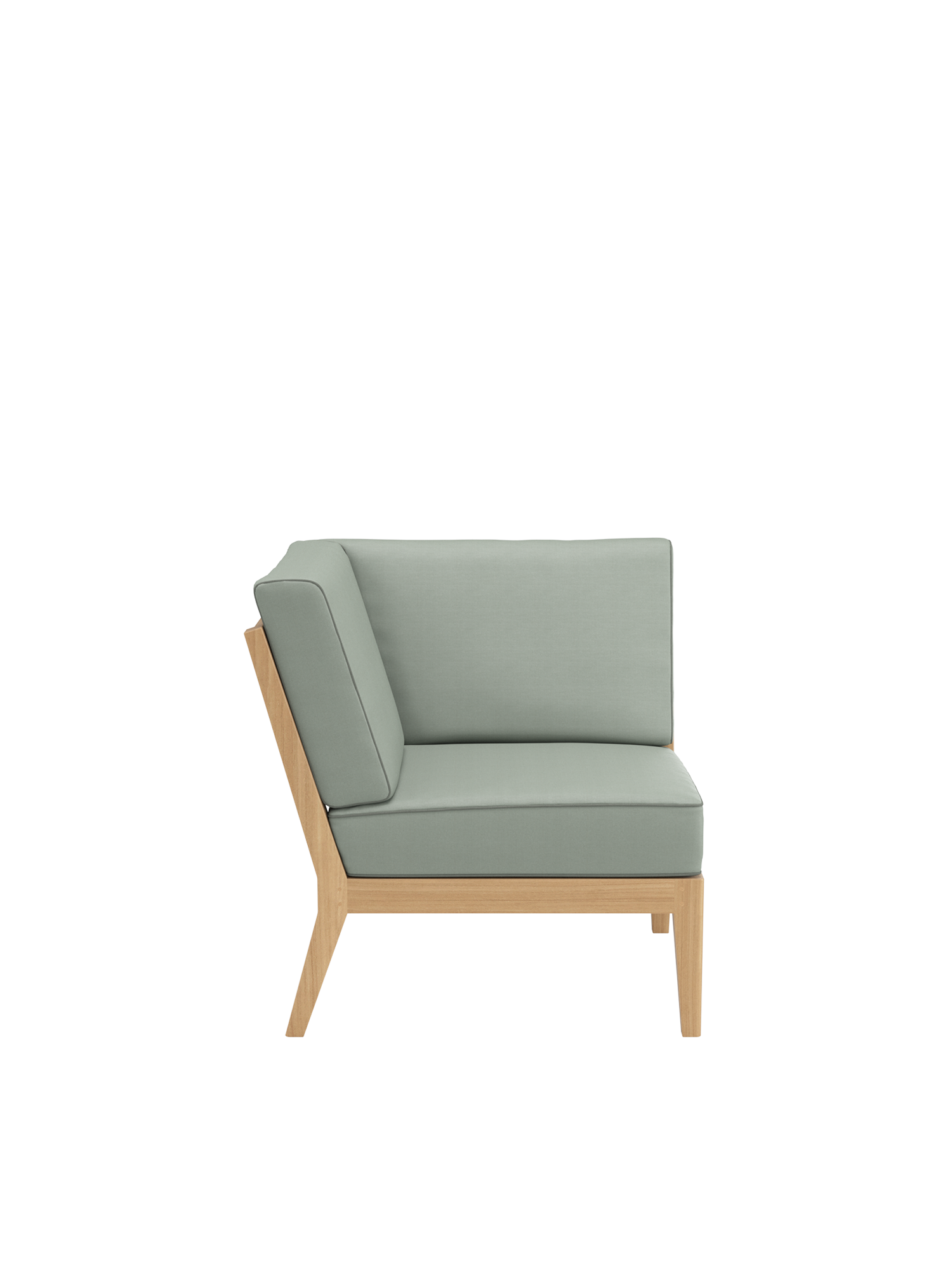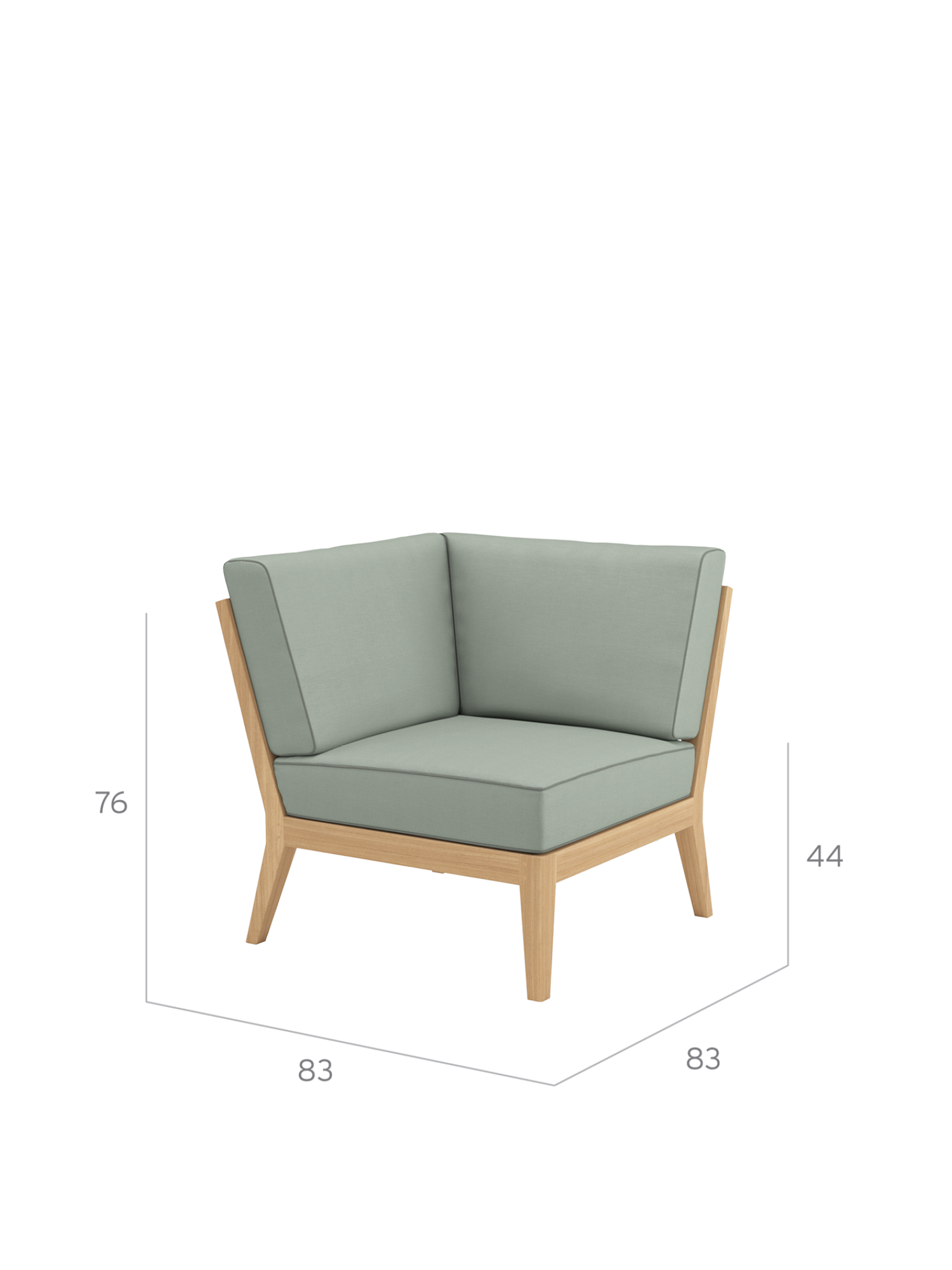 Am Ufer des Schwimmbeckens oder am Rand der Terrasse, auf einem Stadtbalkon oder mitten im Garten: Mit Elementen der Valencia Lounge findet ein Ruhepol in jeder luftigen Lage zur angemessenen Größe. Extra breit und besonders tief, bieten Chaiselongues, Mittelelemente und Eckmodule aus Teak mit ihren quer verlaufenden Sitz- und Rückenlehnen und ausgestellten Beinen viel Raum zum Anlehnen. Dicke, von Kedern gerahmte Polster und Federkissen in frischen Farben setzen dazu sommerliche Akzente.