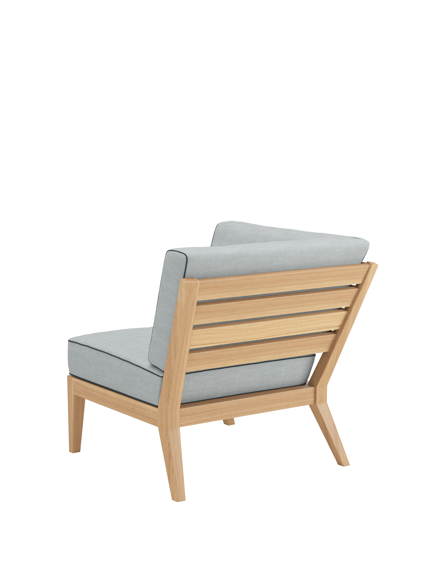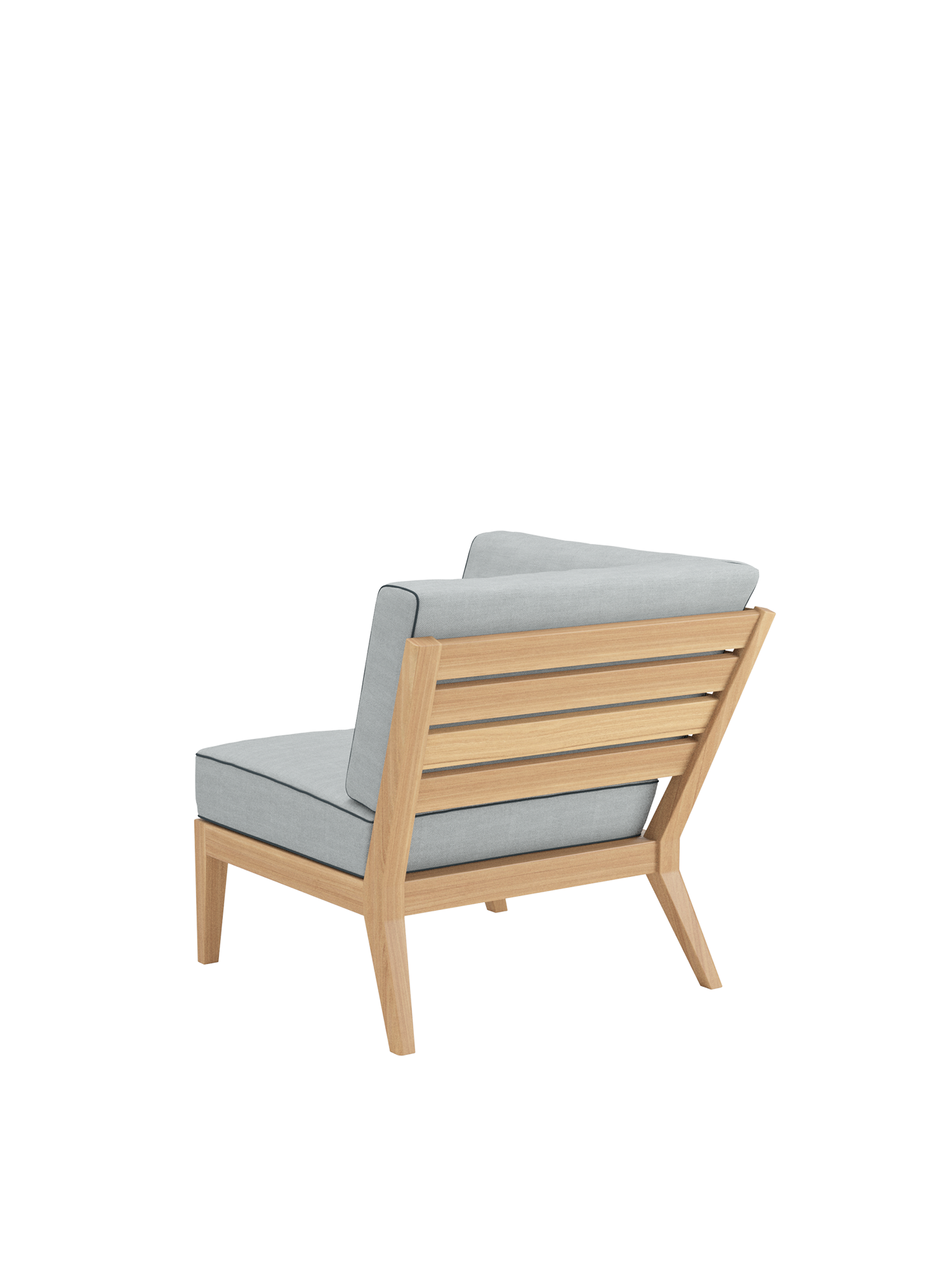 Am Ufer des Schwimmbeckens oder am Rand der Terrasse, auf einem Stadtbalkon oder mitten im Garten: Mit Elementen der Valencia Lounge findet ein Ruhepol in jeder luftigen Lage zur angemessenen Größe. Extra breit und besonders tief, bieten Chaiselongues, Mittelelemente und Eckmodule aus Teak mit ihren quer verlaufenden Sitz- und Rückenlehnen und ausgestellten Beinen viel Raum zum Anlehnen. Dicke, von Kedern gerahmte Polster und Federkissen in frischen Farben setzen dazu sommerliche Akzente.