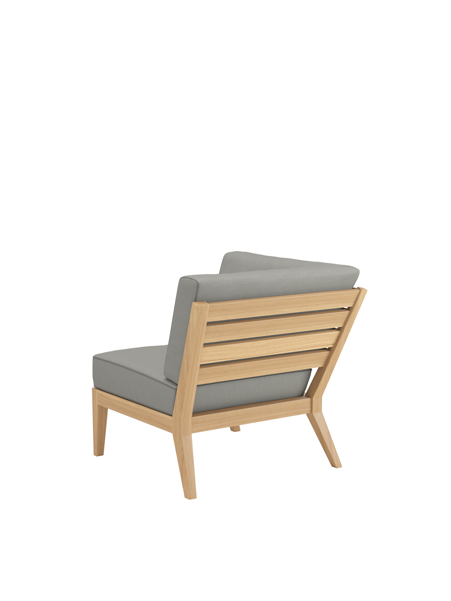 Am Ufer des Schwimmbeckens oder am Rand der Terrasse, auf einem Stadtbalkon oder mitten im Garten: Mit Elementen der Valencia Lounge findet ein Ruhepol in jeder luftigen Lage zur angemessenen Größe. Extra breit und besonders tief, bieten Chaiselongues, Mittelelemente und Eckmodule aus Teak mit ihren quer verlaufenden Sitz- und Rückenlehnen und ausgestellten Beinen viel Raum zum Anlehnen. Dicke, von Kedern gerahmte Polster und Federkissen in frischen Farben setzen dazu sommerliche Akzente.