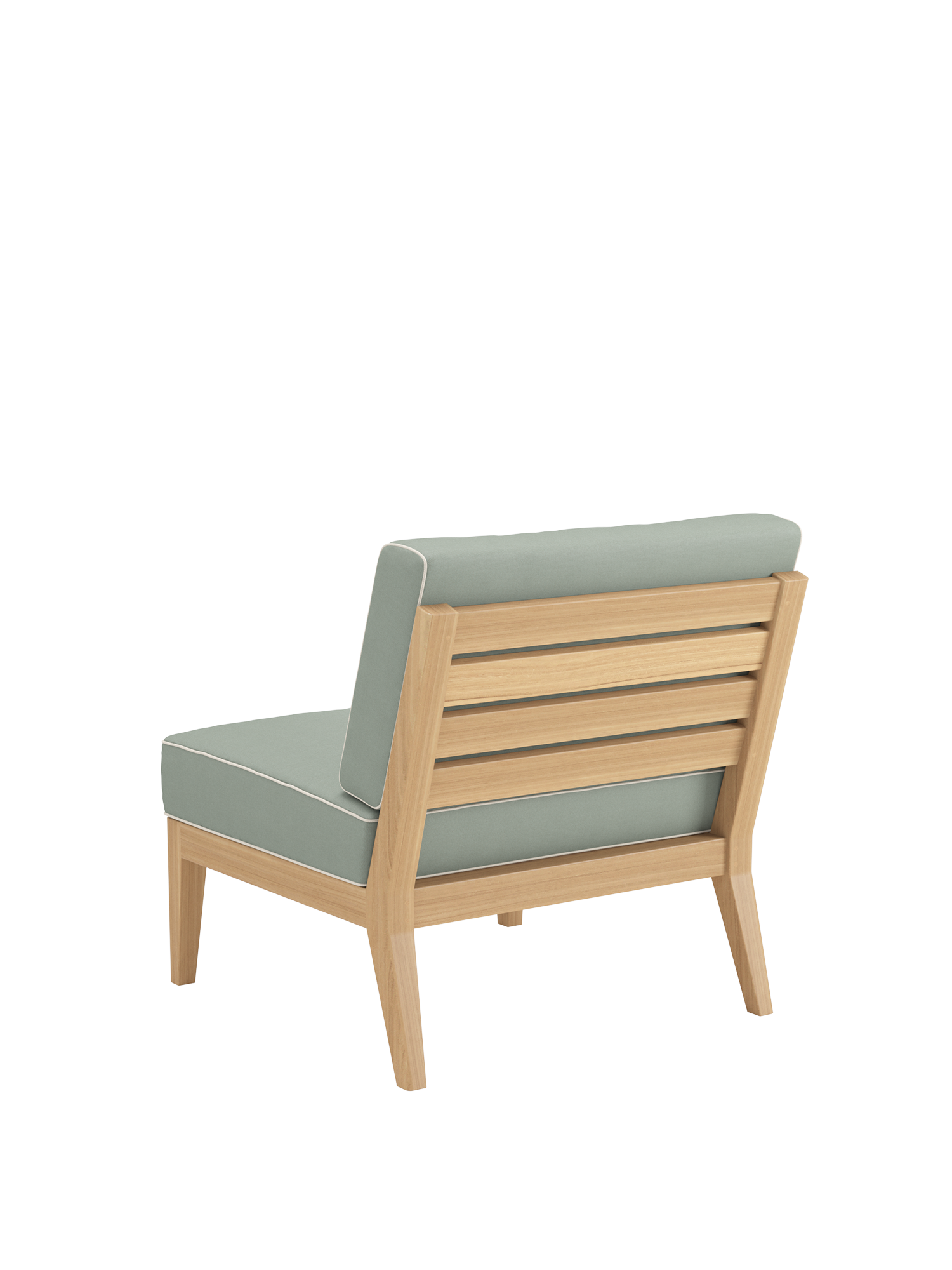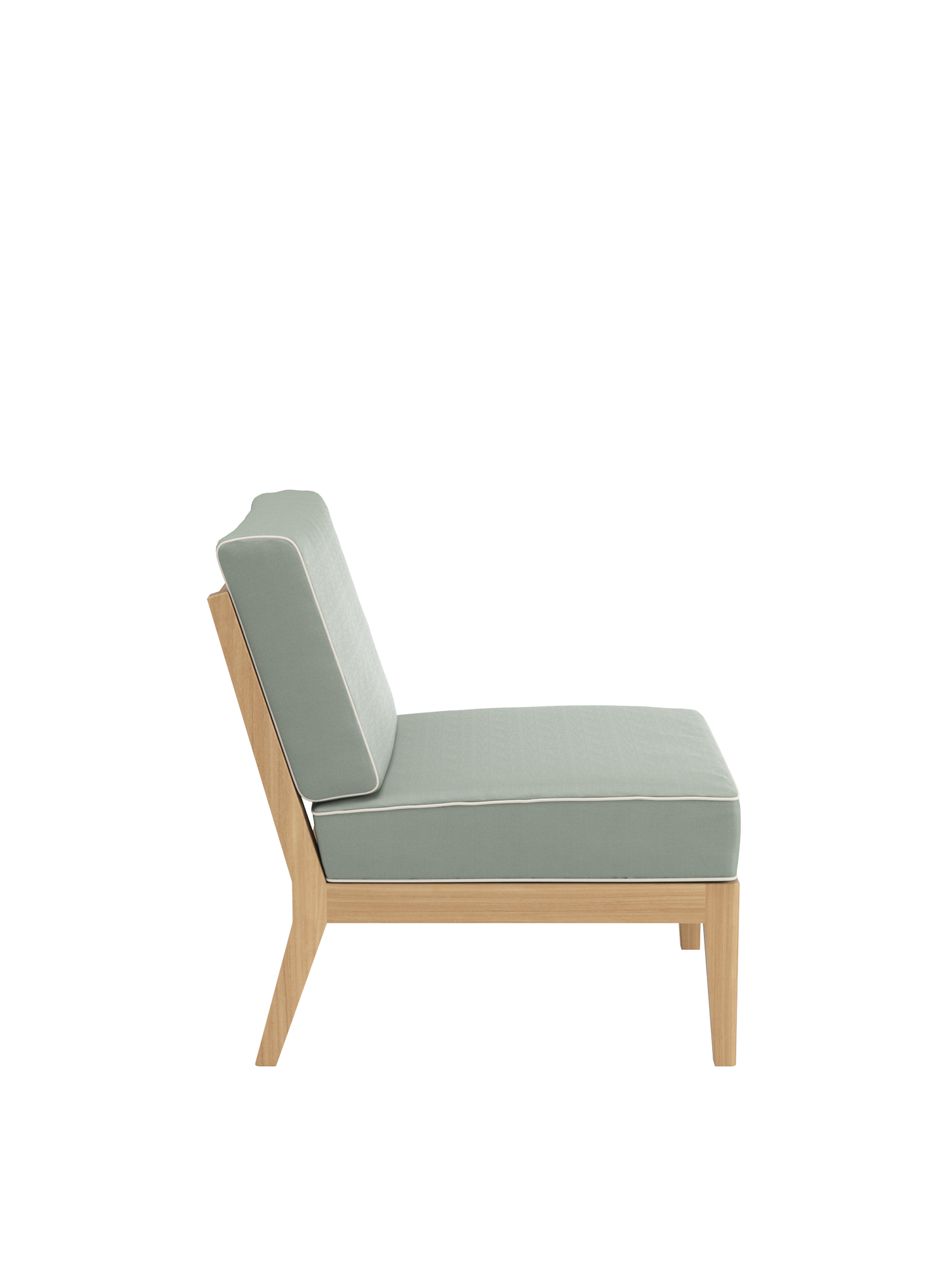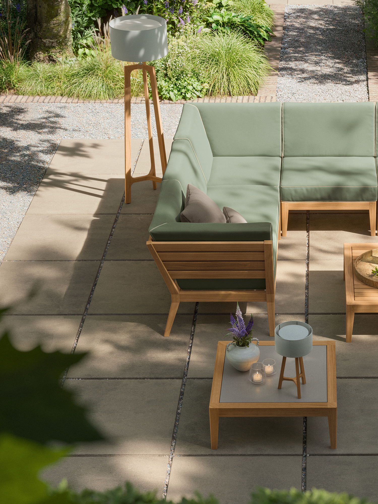 Am Ufer des Schwimmbeckens oder am Rand der Terrasse, auf einem Stadtbalkon oder mitten im Garten: Mit Elementen der Valencia Lounge findet ein Ruhepol in jeder luftigen Lage zur angemessenen Größe. Extra breit und besonders tief, bieten Chaiselongues, Mittelelemente und Eckmodule aus Teak mit ihren quer verlaufenden Sitz- und Rückenlehnen und ausgestellten Beinen viel Raum zum Anlehnen. Dicke, von Kedern gerahmte Polster und Federkissen in frischen Farben setzen dazu sommerliche Akzente.