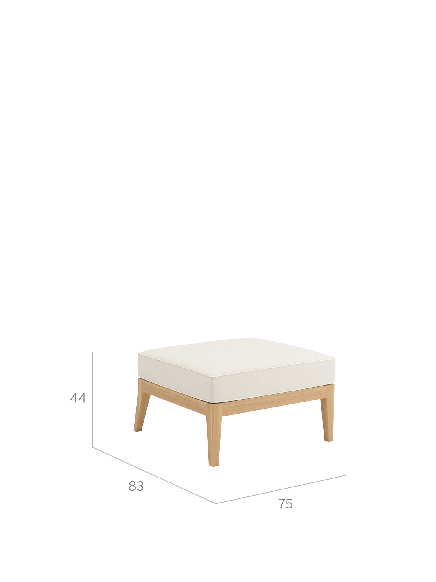 Das Lounge Element ohne Lehne, mit gleichem Maß und ausgestellten hinteren Beinen lässt sich lückenlos einreihen – wahlweise als Mittel- oder Endelement.