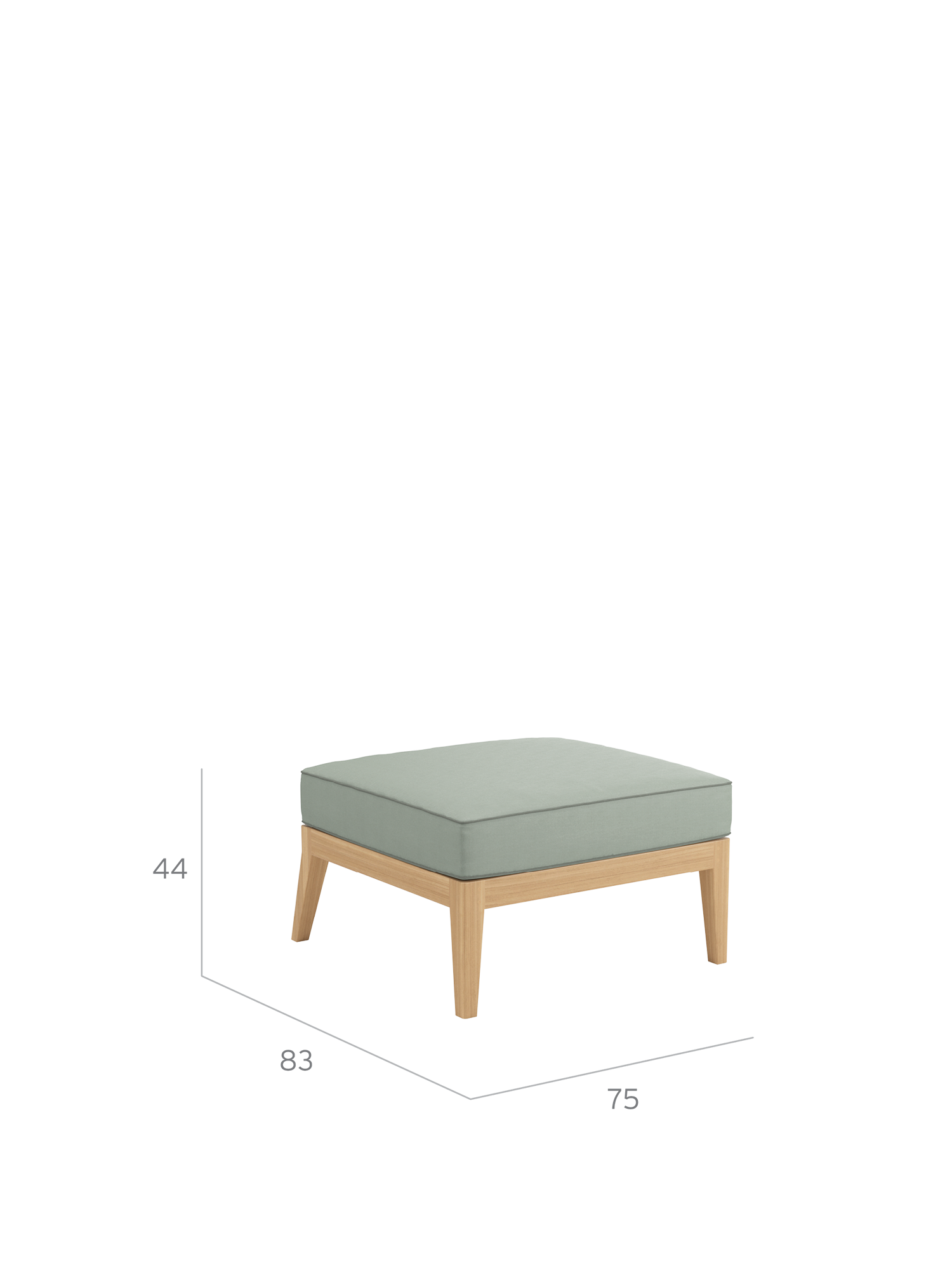 Das Lounge Element ohne Lehne, mit gleichem Maß und ausgestellten hinteren Beinen lässt sich lückenlos einreihen – wahlweise als Mittel- oder Endelement.