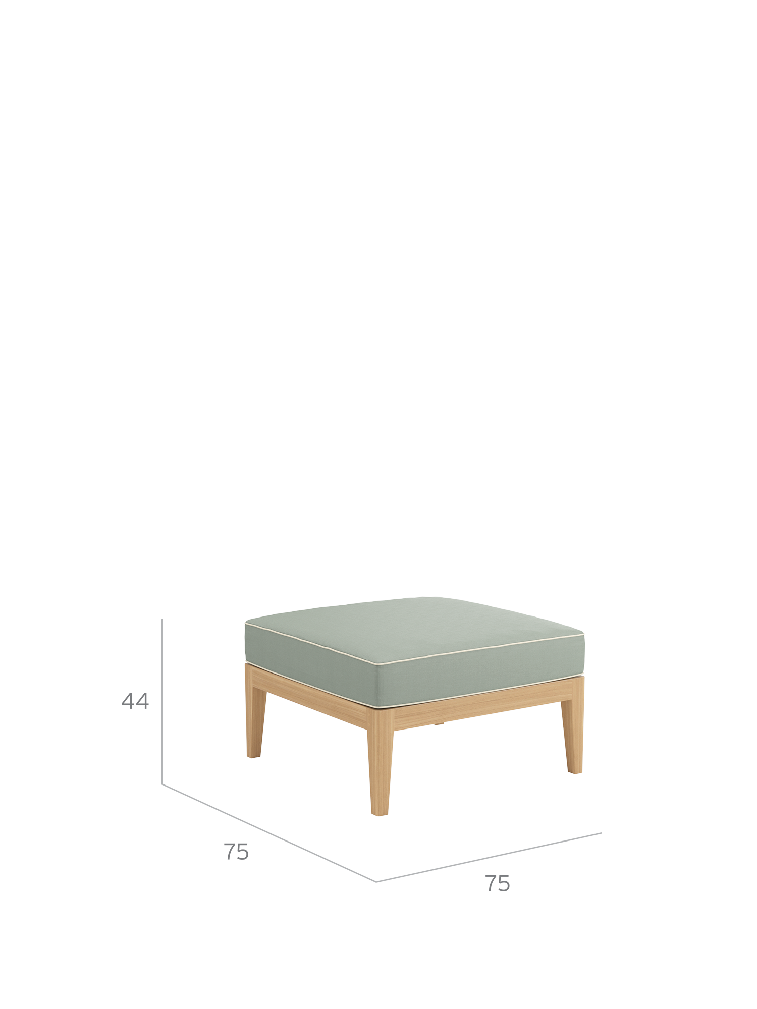 Der passende Hocker verlängert die großzügigen Elemente, entspannt angenehm die Beine und dient mit aufgelegtem Polster als Sitz.