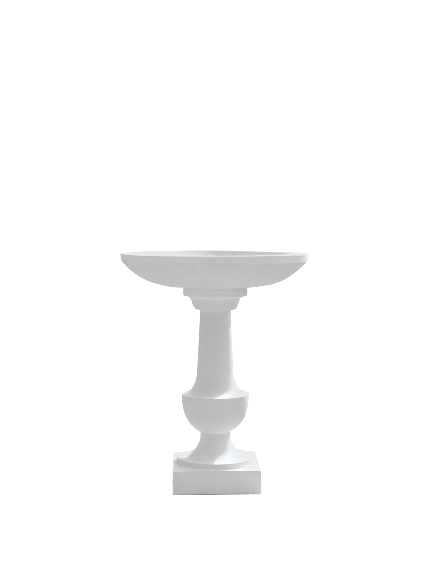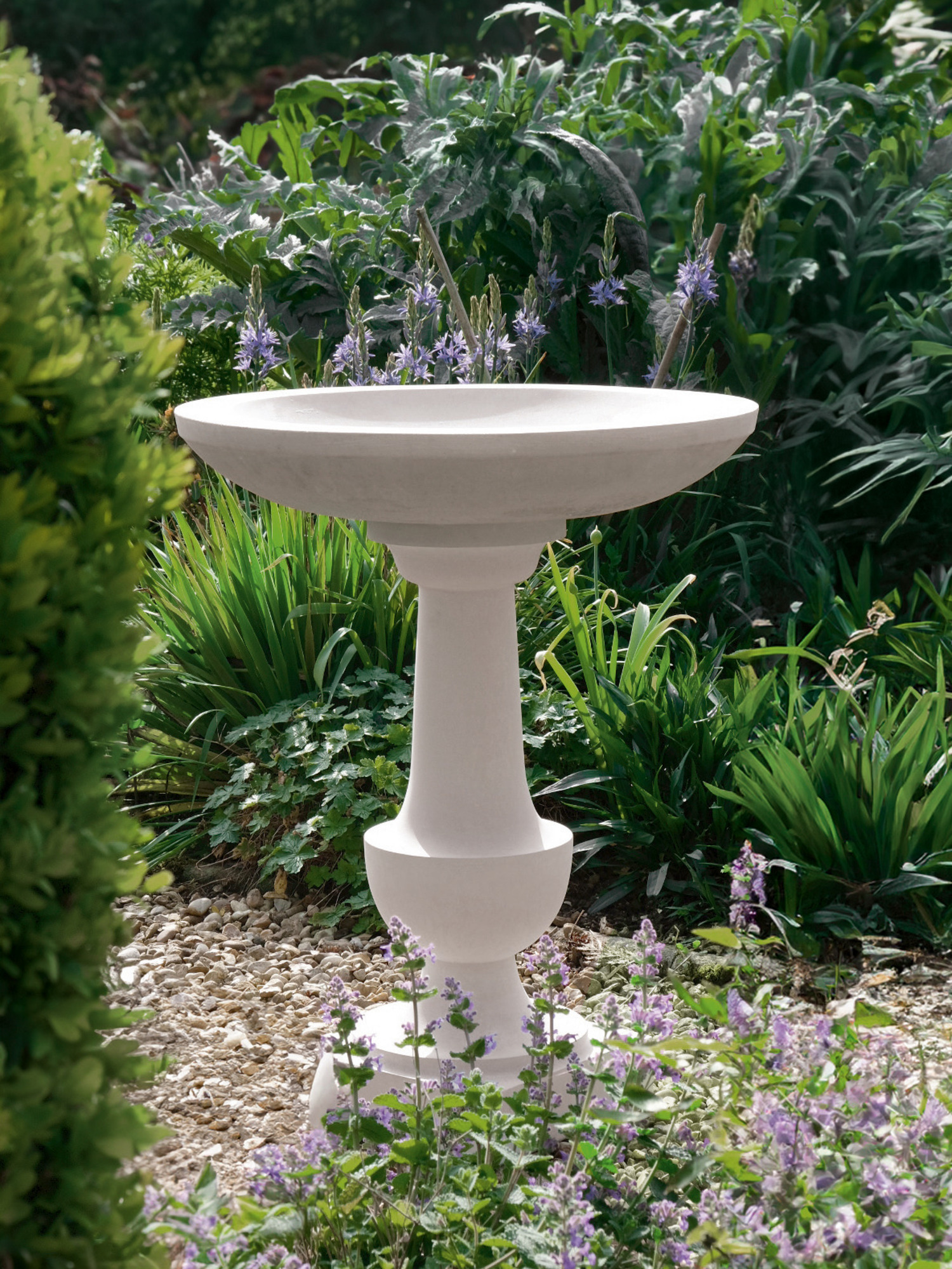 Ein Objekt aus hochwertigem Steinguss, das sich so selbstverständlich in den Garten einfügt, als wäre es immer schon da gewesen. Die Struktur der sachten Kalksteinrundung gibt Vogelfüßen natürlichen Halt, und die flache Form sorgt dafür, dass schon kleine Regenschauer das Wasser komplett austauschen können.